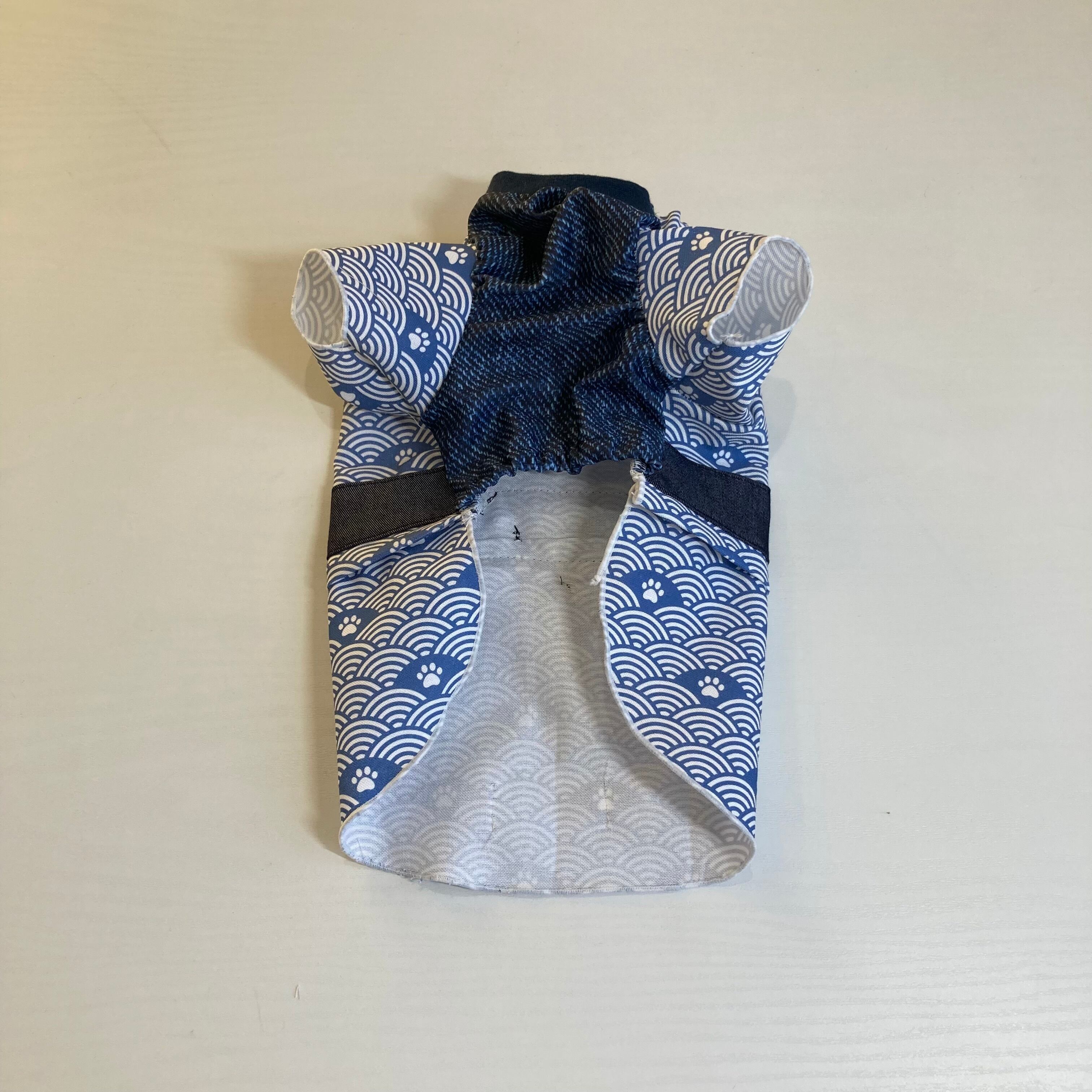 小型犬 首周りゴム入り 浴衣風タンクトップ 肉球柄(紺) Sサイズ お腹はひんやり接触冷感生地 お袖有り