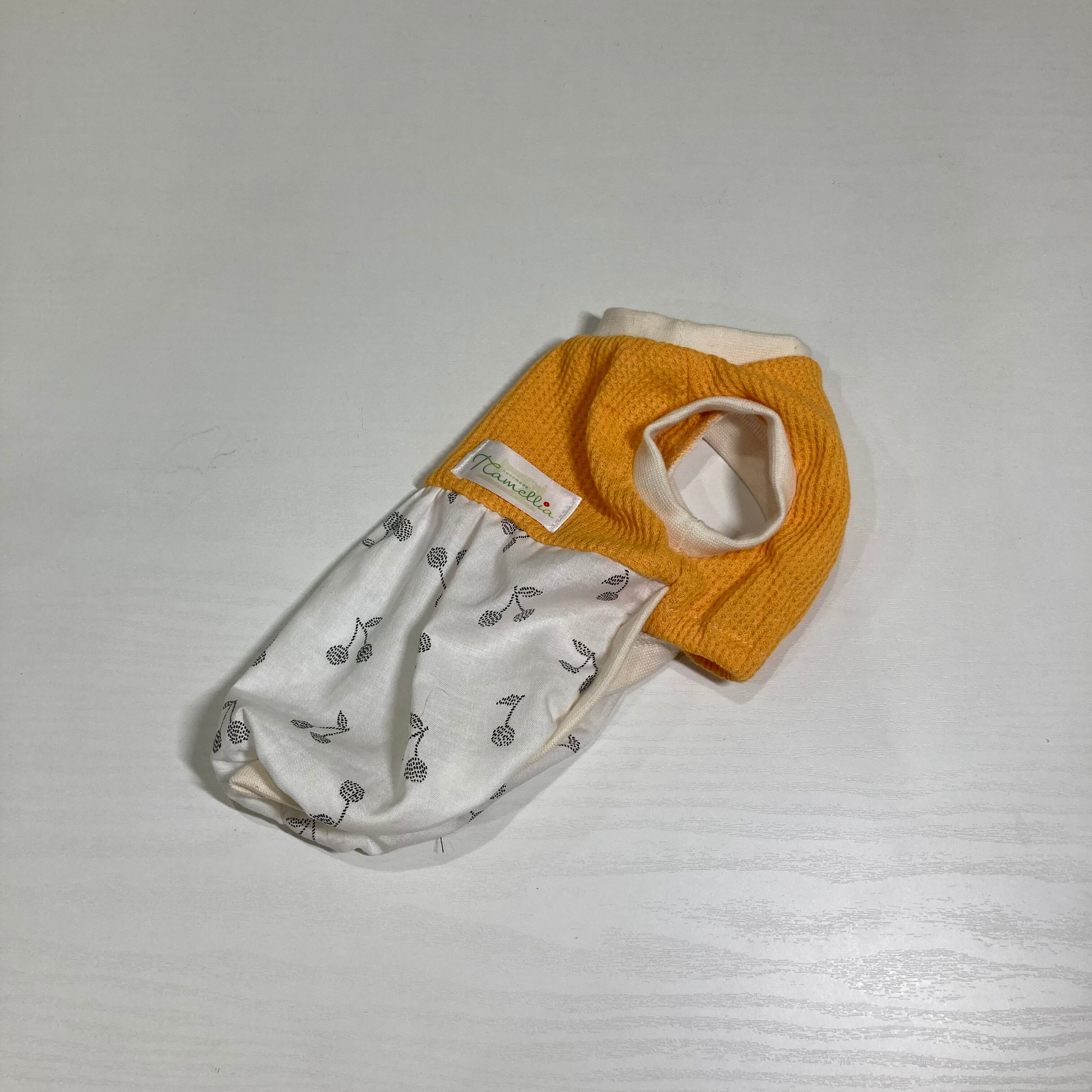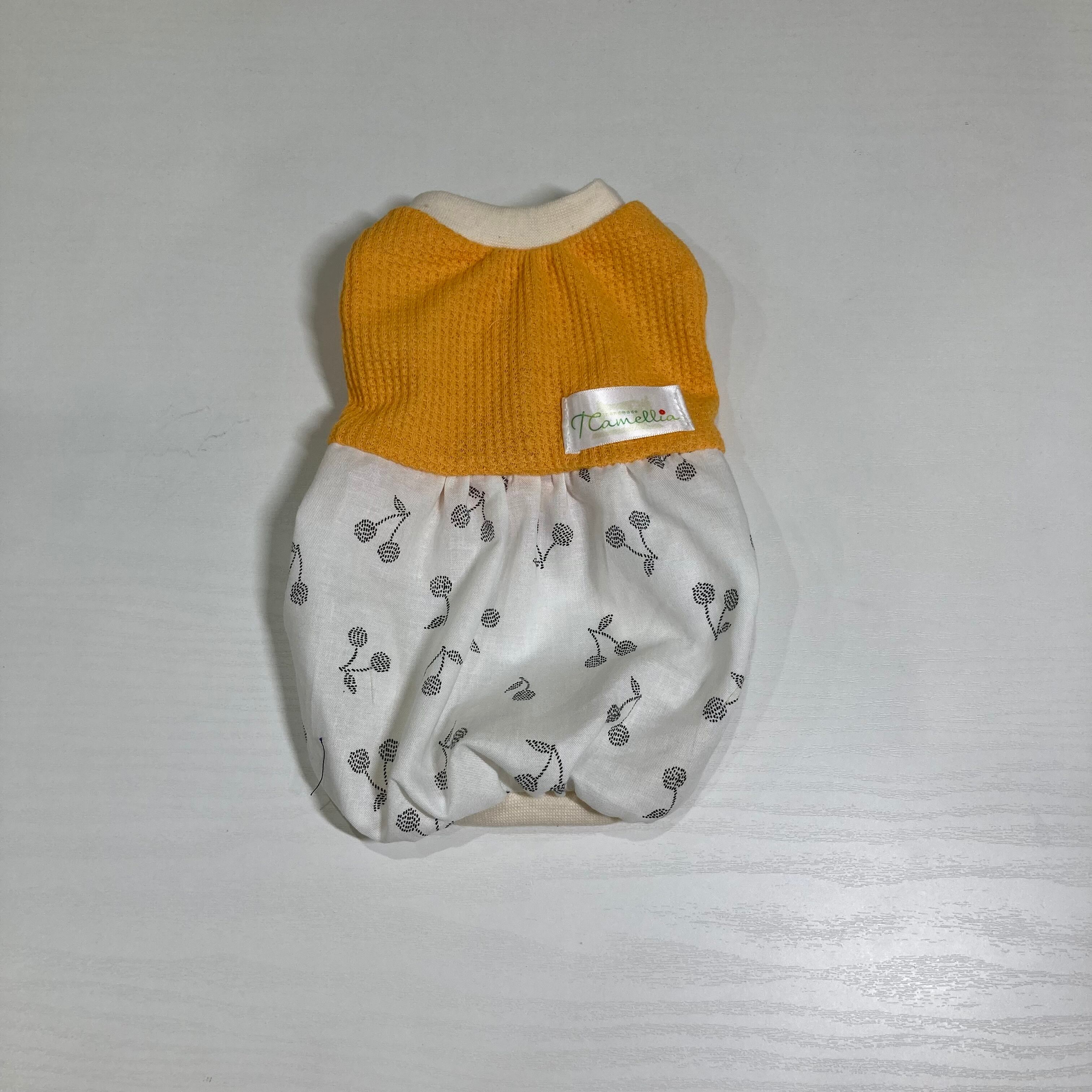 小型犬用 ふんわりタンクトップ ワッフルニット(イエロー)&さくらんぼ(白) XXSサイズ ツートンタイプになります。
