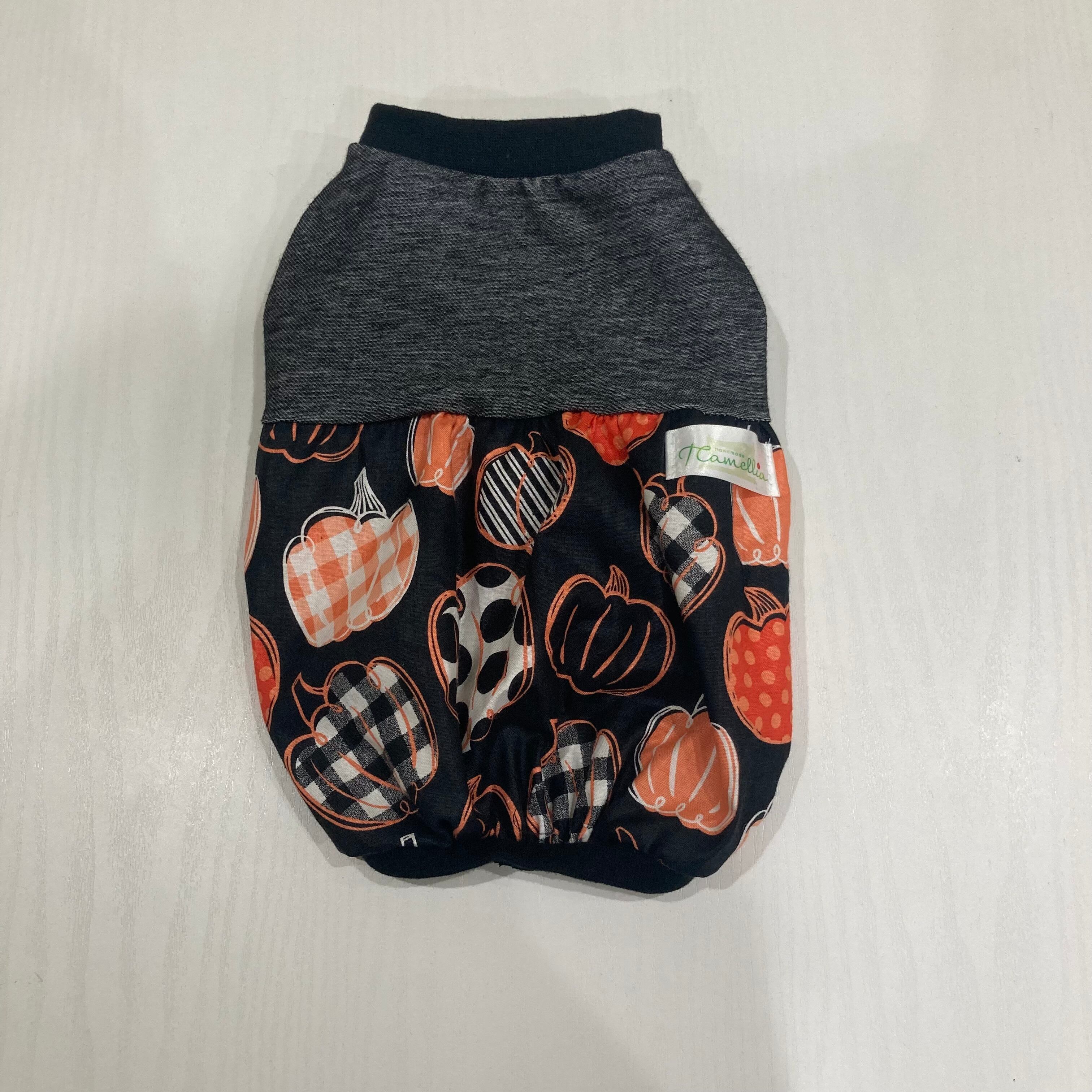小型犬 犬服 ふんわりタンクトップ かぼちゃ柄(ブラック)&デニム Sサイズ