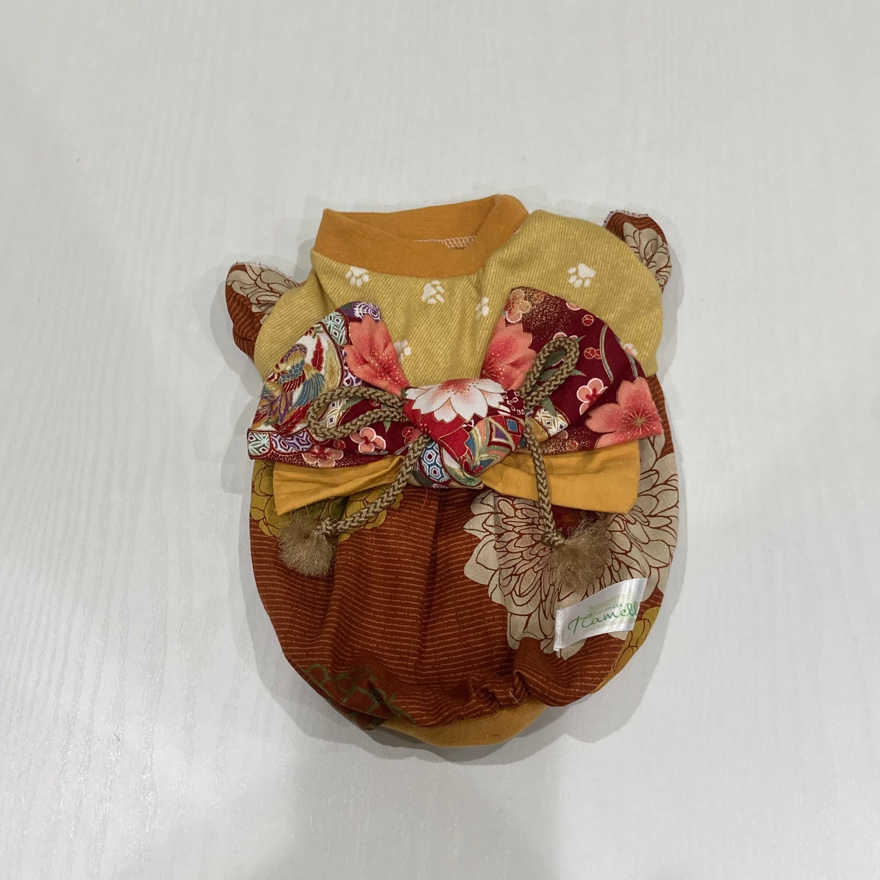 犬服 タンクトップ着物風 肉球柄(イエロー)&茶系和柄 XSサイズ
