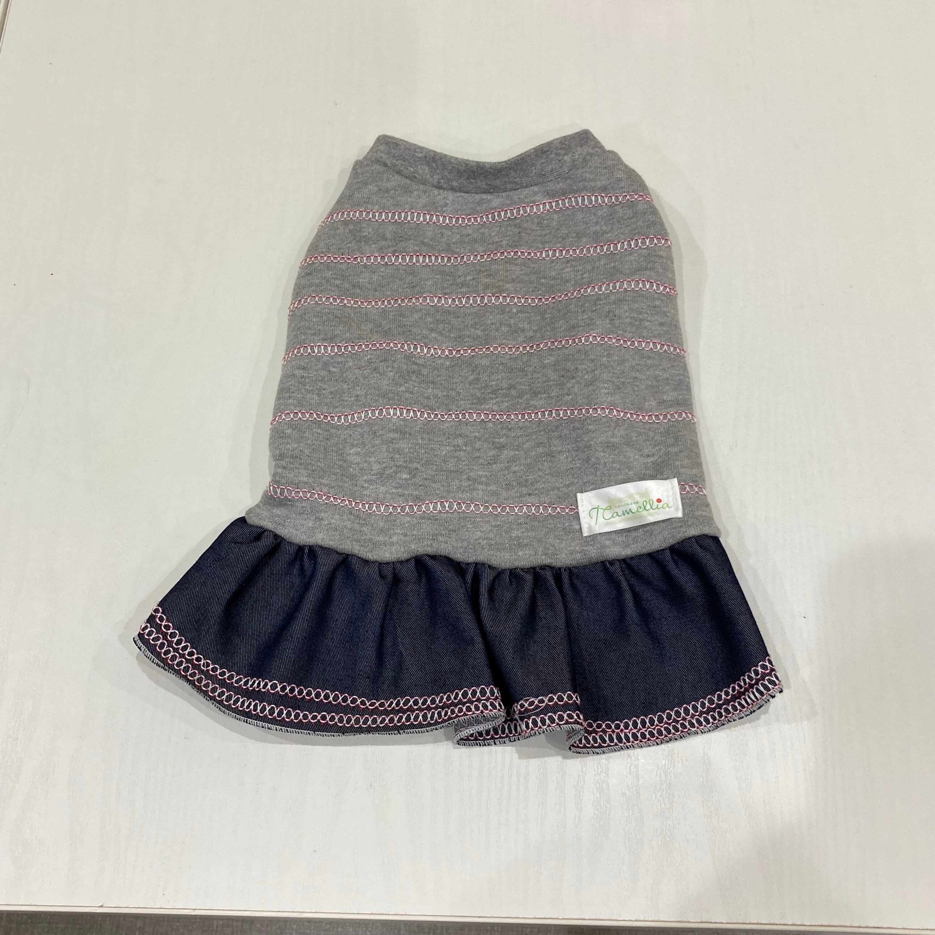 小型犬 犬服 ワンピース トレーナー生地(グレー)&デニム XX Mサイズ クリエイティブカバーステッチ
