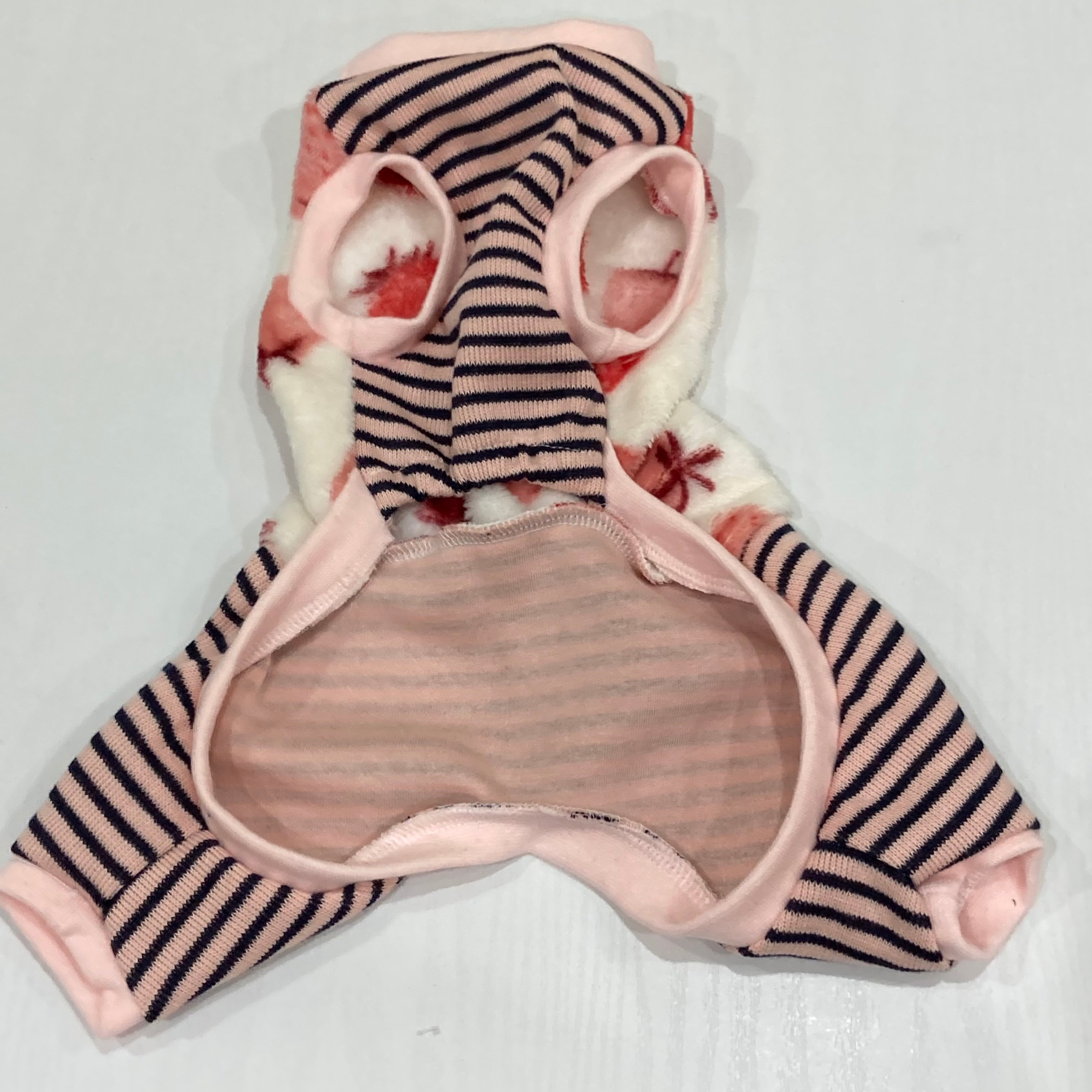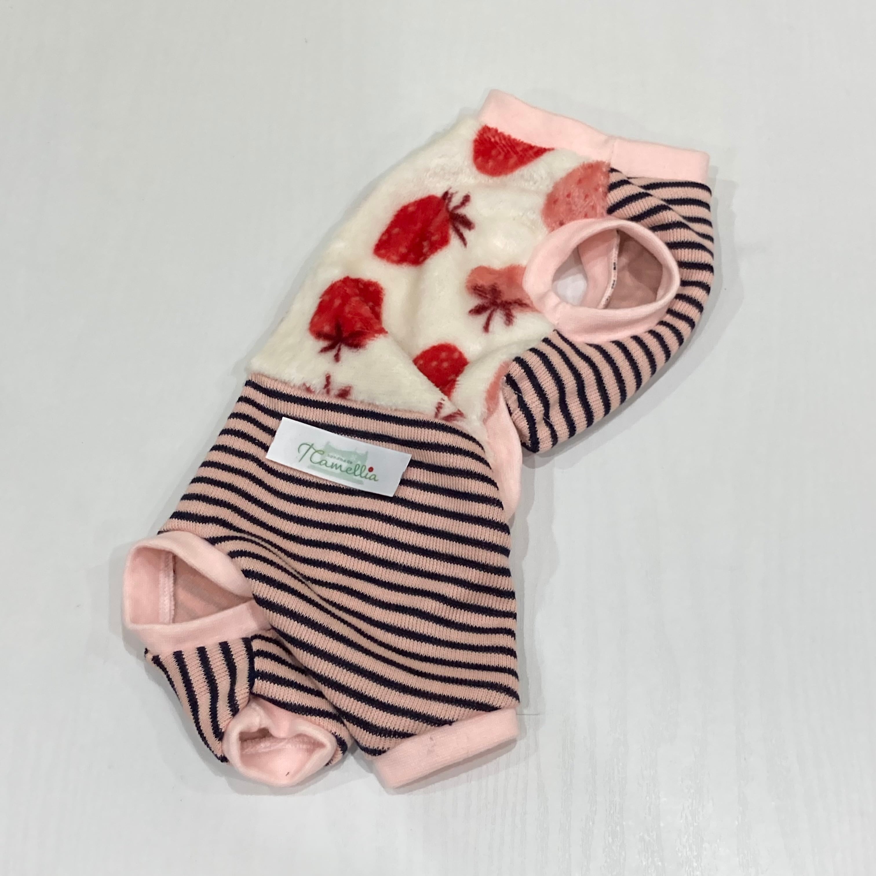 犬服 フリースツートンロンパース いちご柄&ボーダー(ピンクリブ) XSサイズ になります。