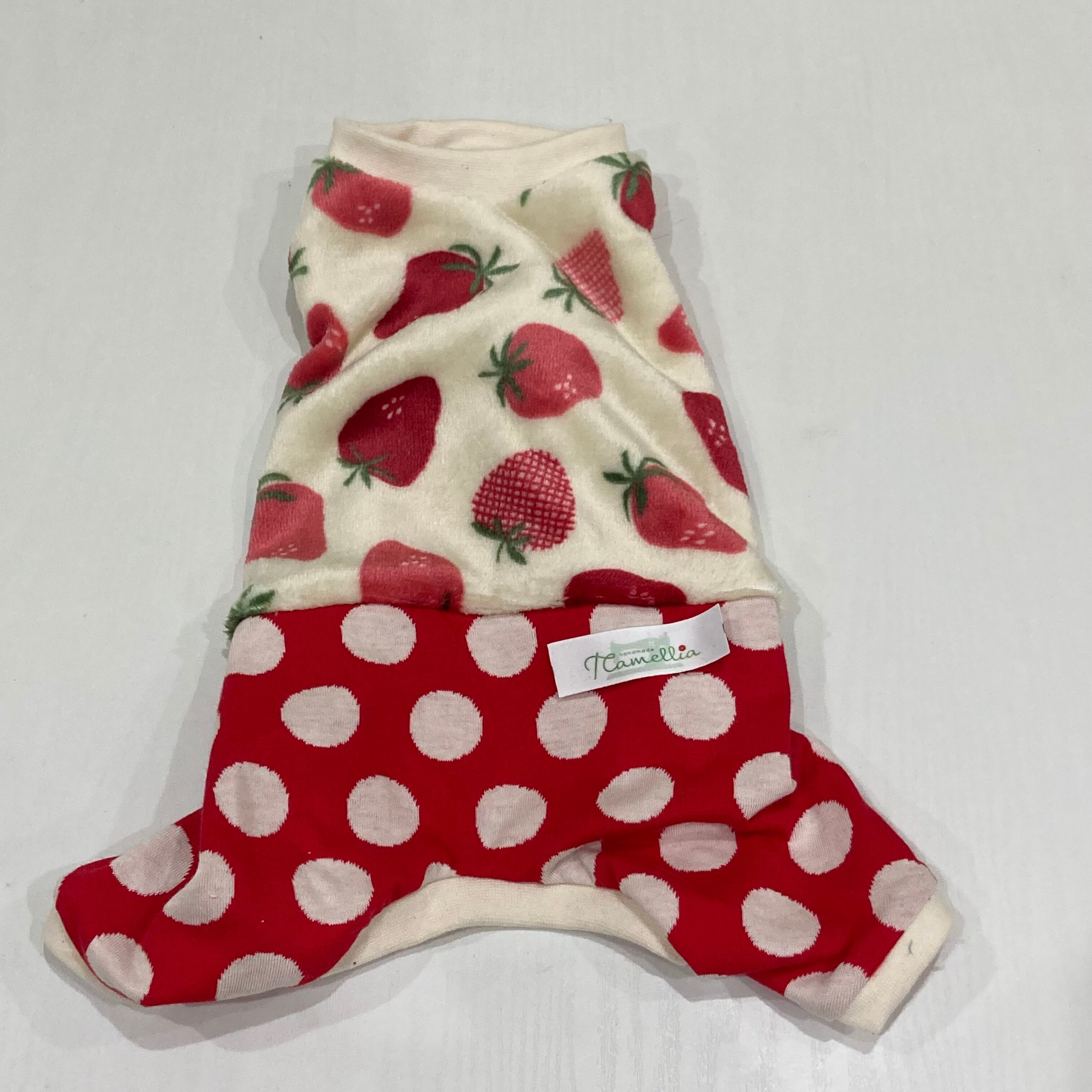 犬服 フリースツートンロンパース いちご柄&赤ドット(生成リブ) Sサイズ になります。