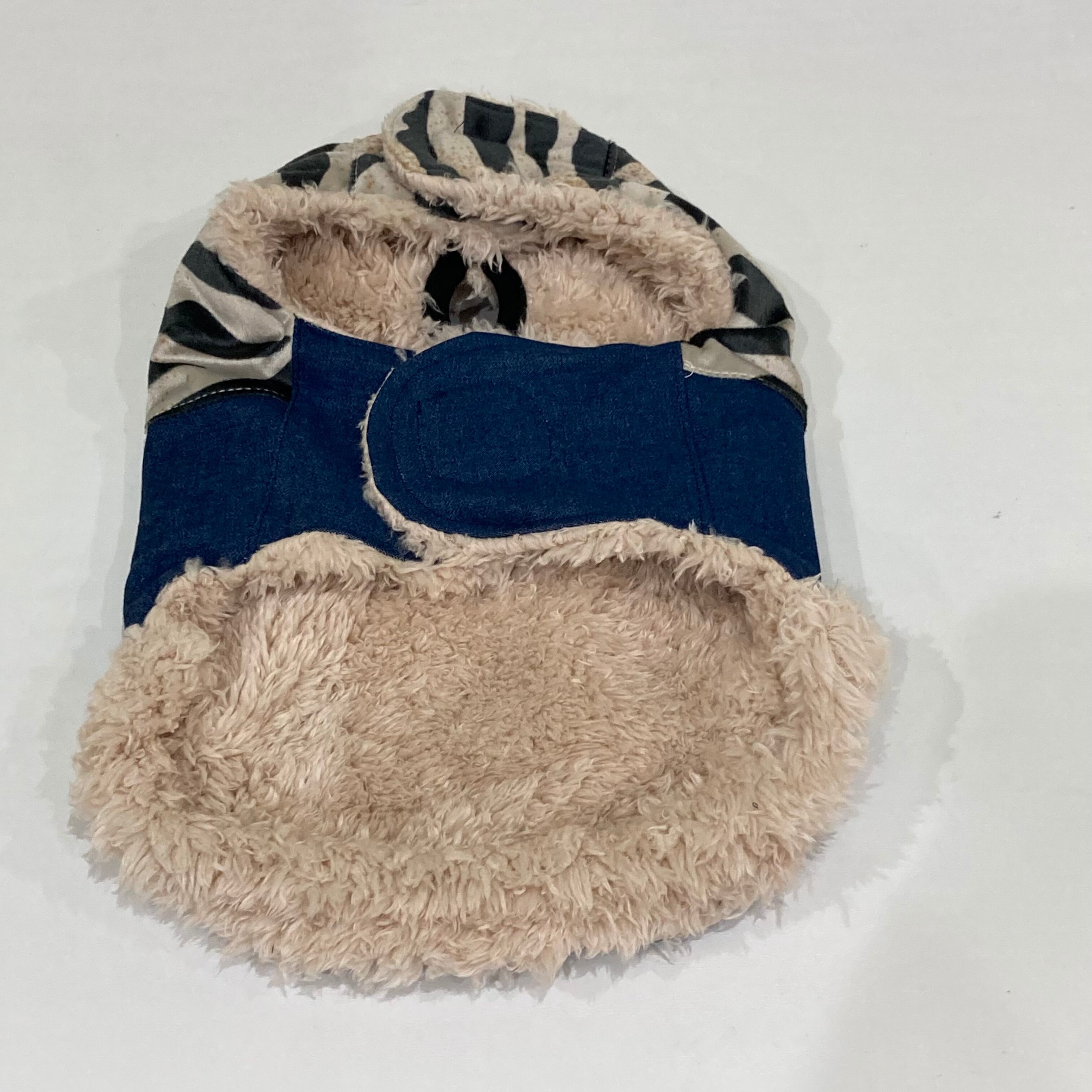犬服 アニマルシリーズ プードルファーポンチョ ゼブラ柄&デニム リード穴ありタイプ S