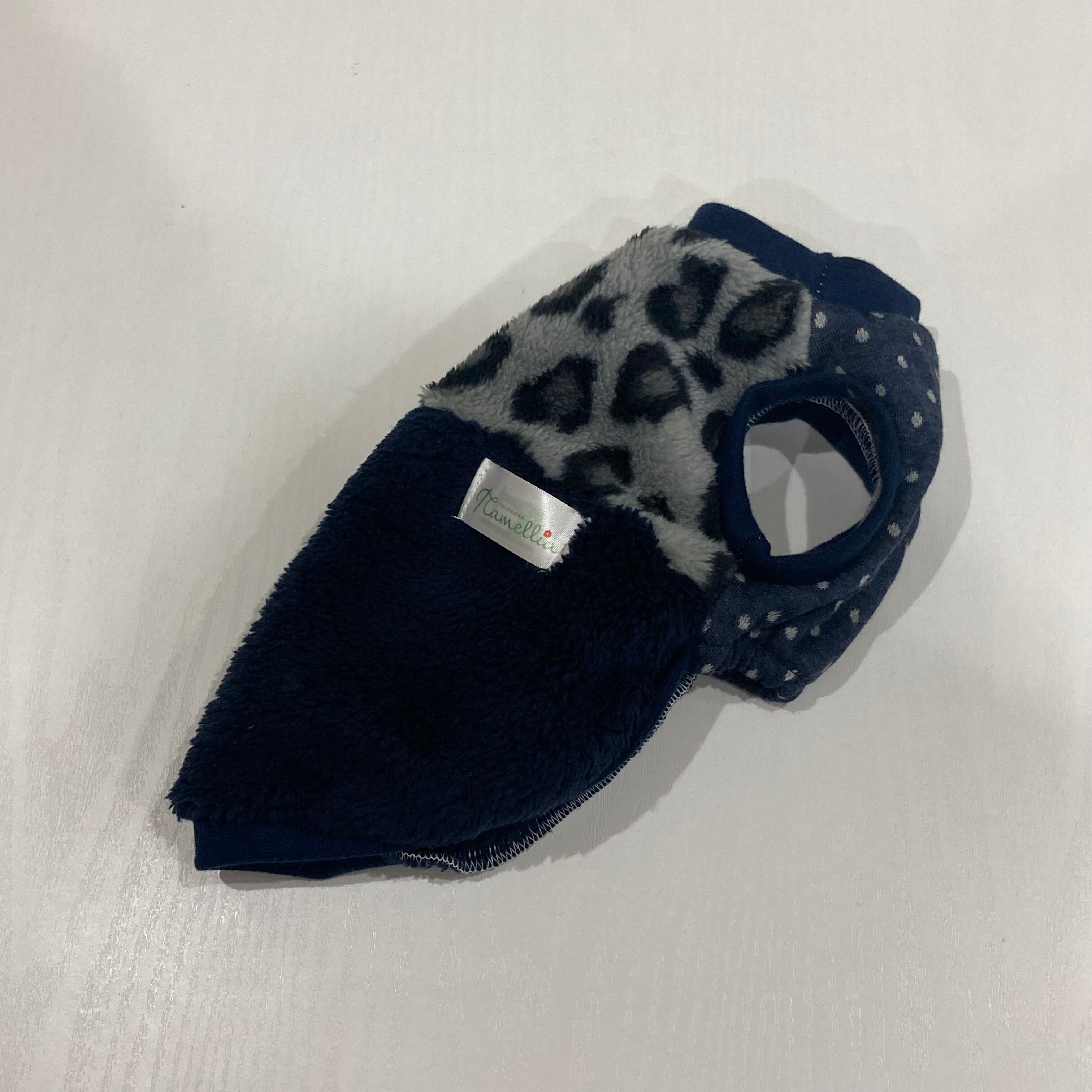 犬服 フリースベスト レオパード(グレー)&プードルファー(紺)XXSサイズ ふわふわベスト になります。