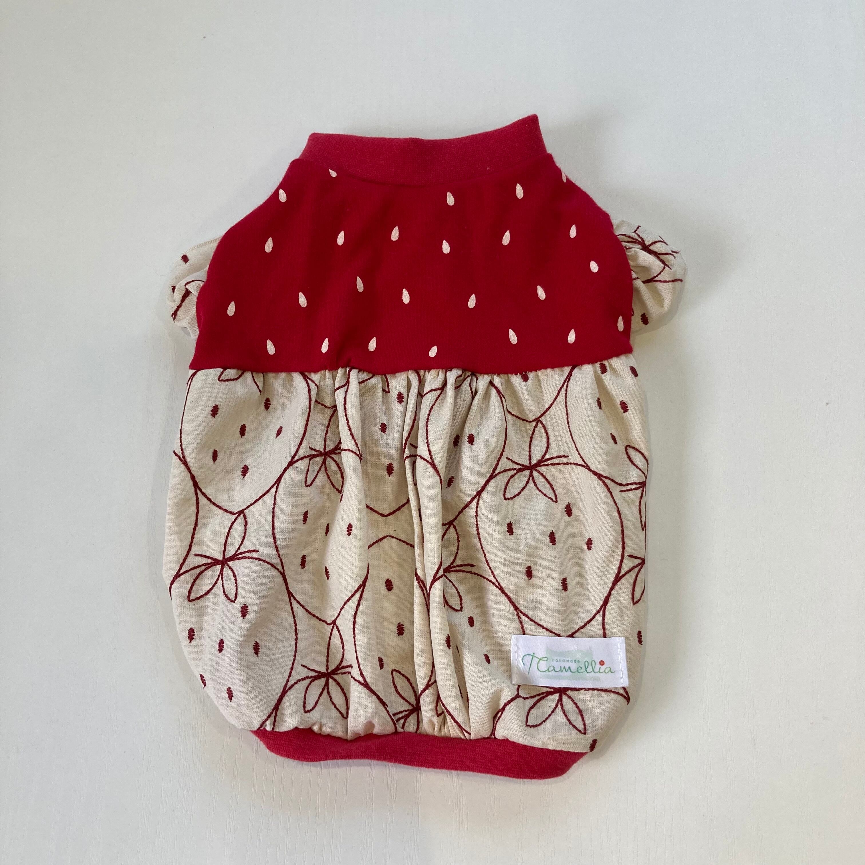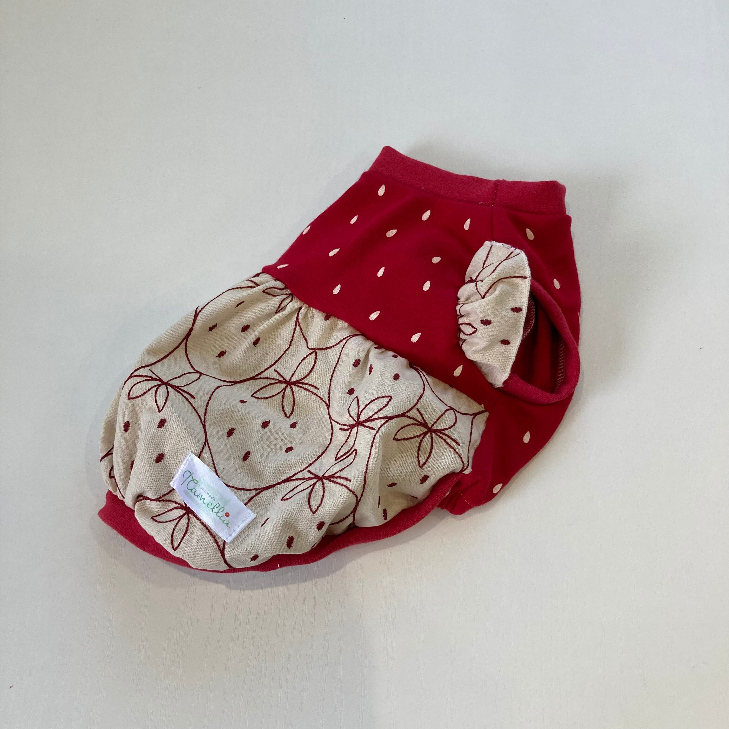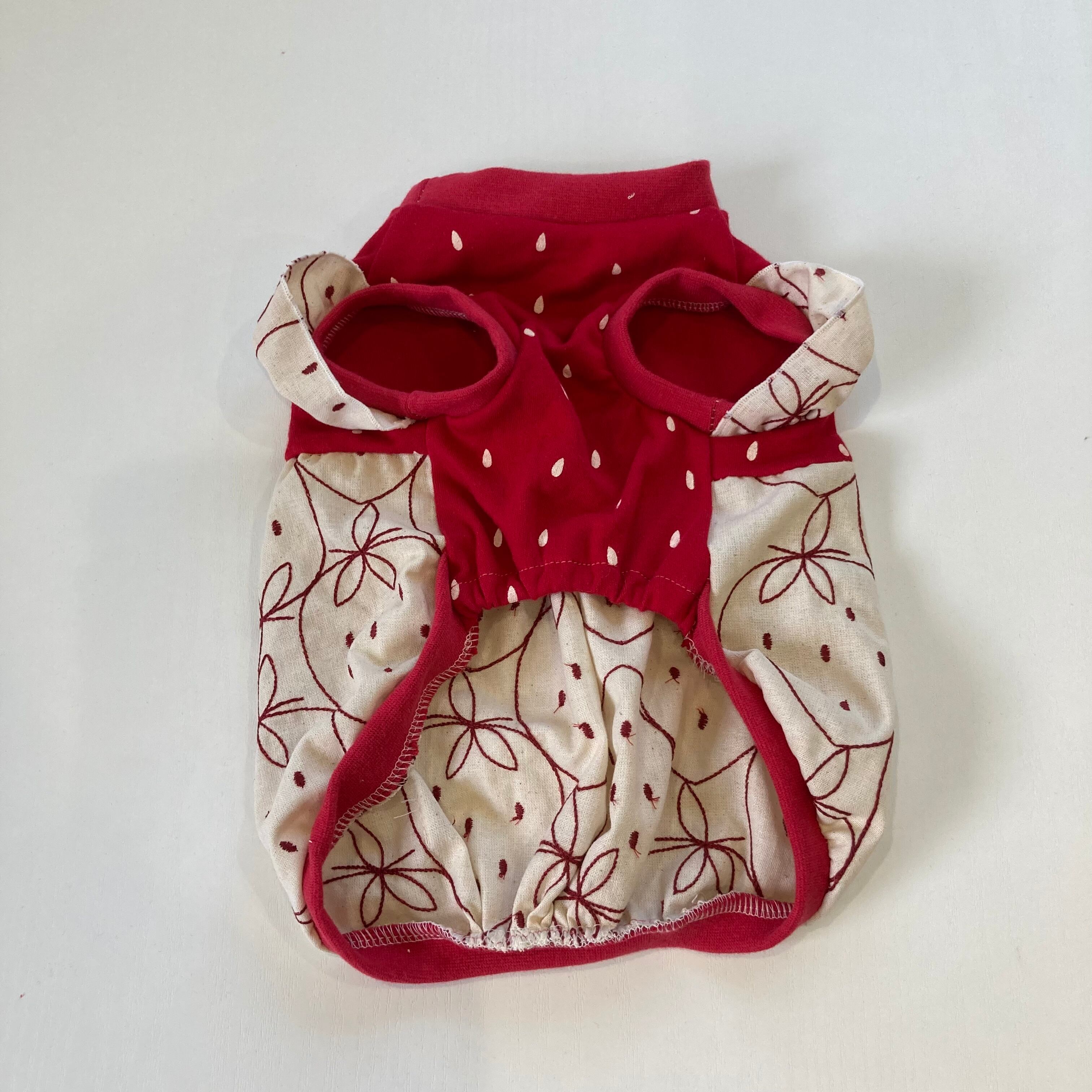犬服 バルーンタンクトップ いちご(赤)&いちご刺繍(生成) Sサイズ ふんわりタンクトップになります。