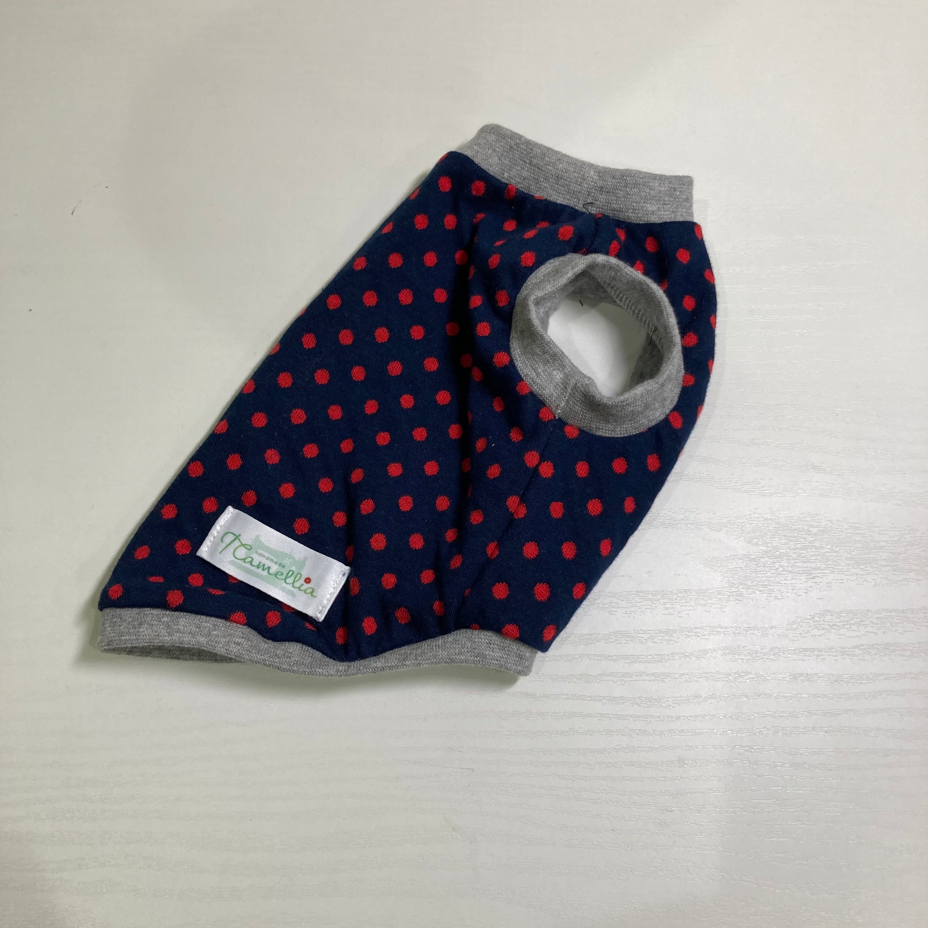 犬服 タンクトップ 紺地&レッドドッド XXSサイズ グレーリブ