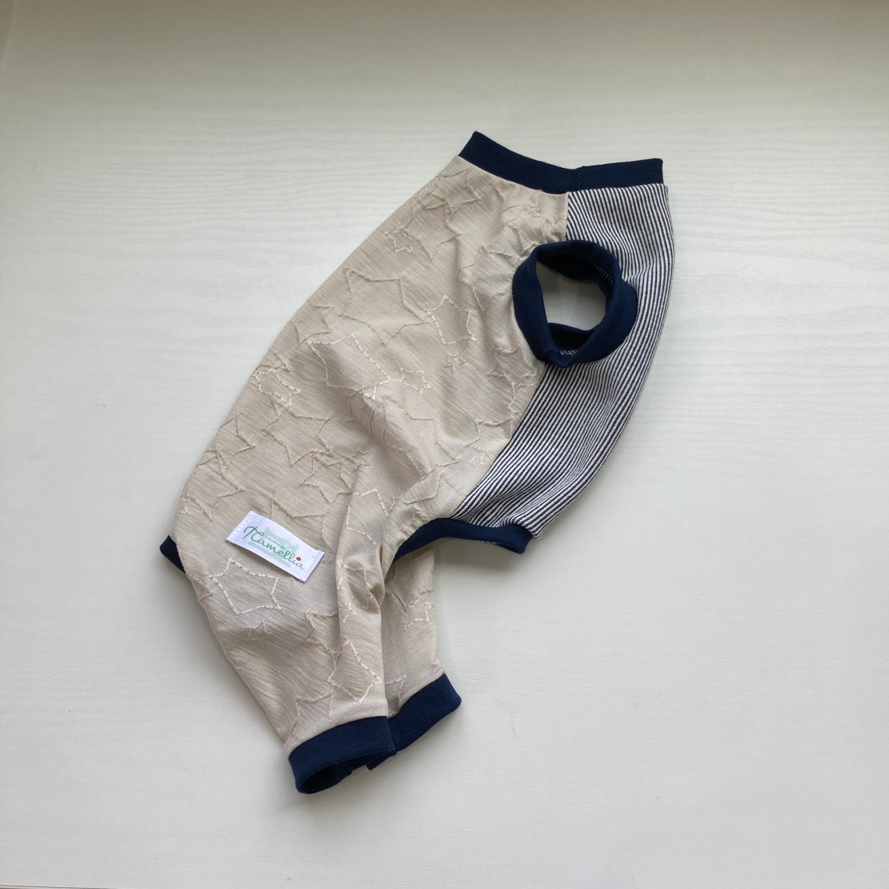 犬服 ロンパース 星柄ベージュ(紺リブ)Sサイズ