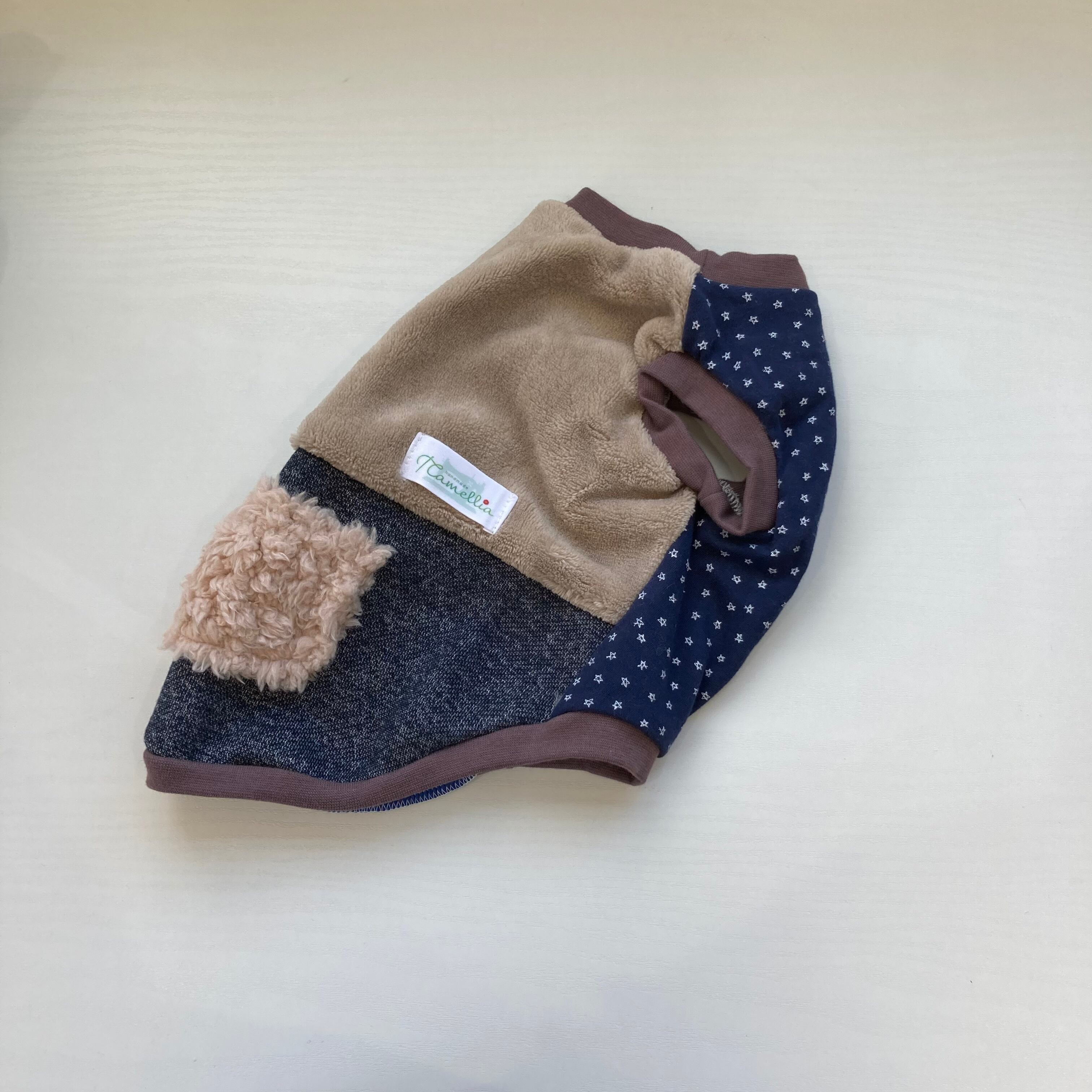 犬服 やわらかフリース切り替えベスト ベージュ&デニム調裏起毛ニット (ココアリブ)Sサイズ