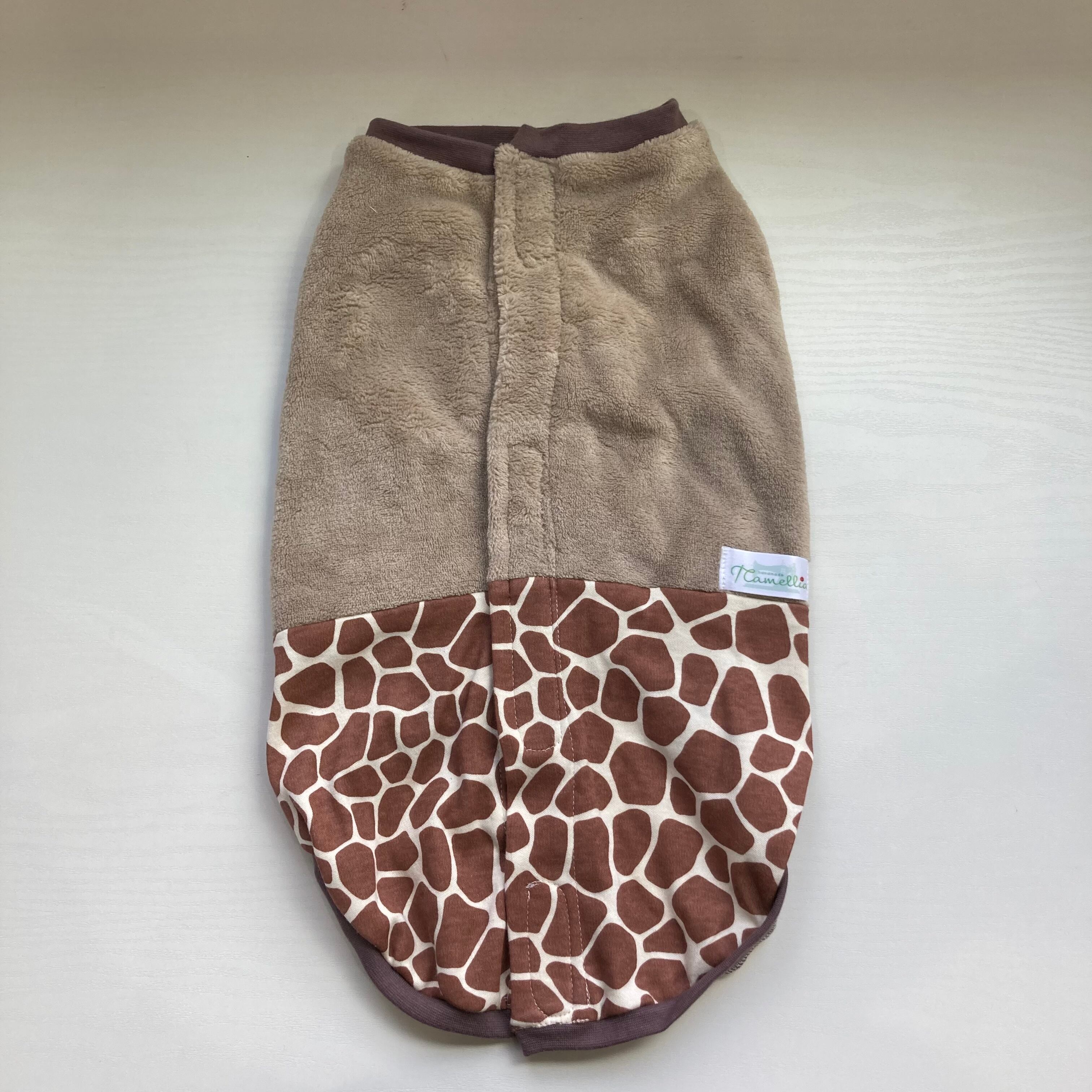 中型犬用犬服 SMサイズ 背開きタイプ やわらかフリース切り替えベスト ベージュ&キリン柄(ココアリブ)