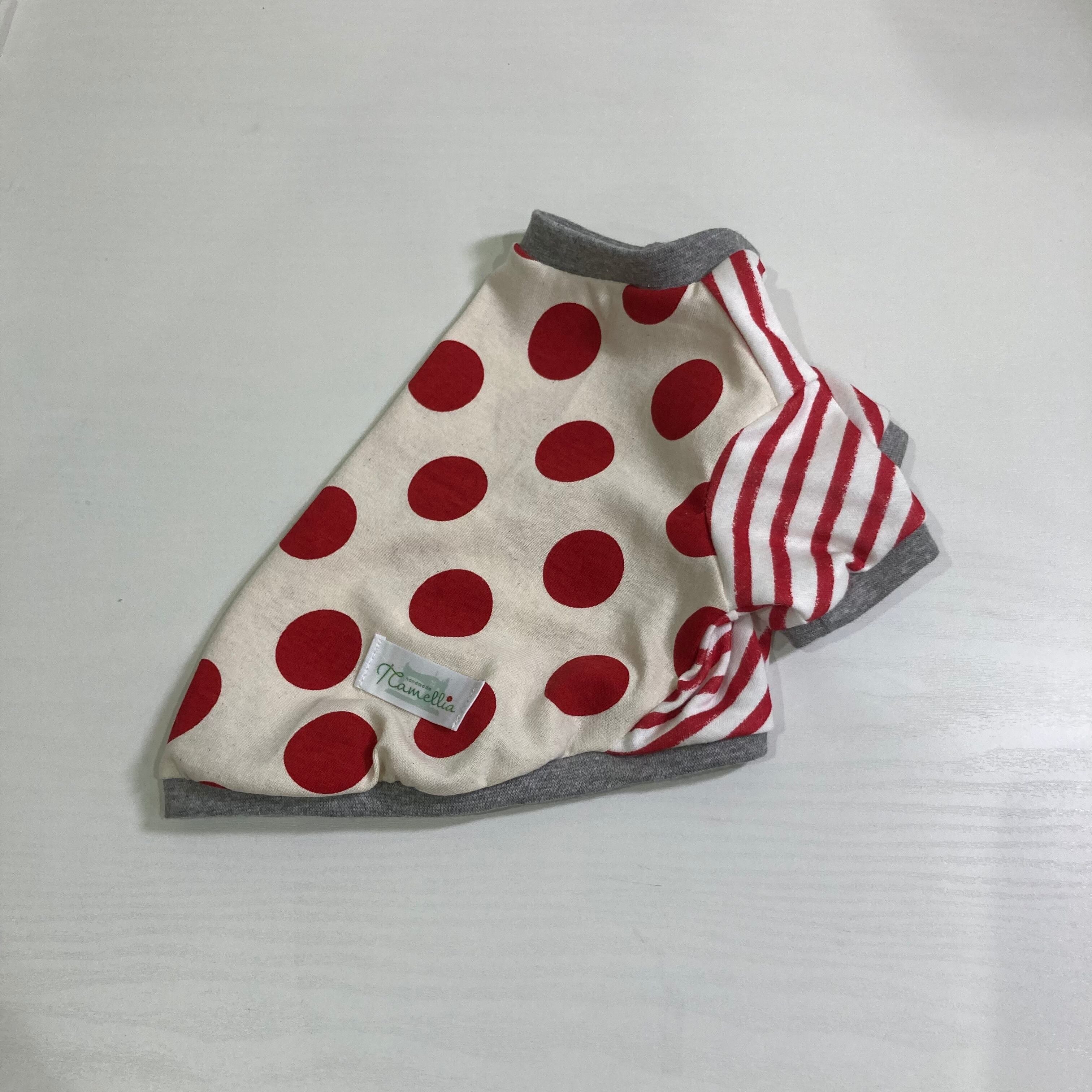 犬服 Tシャツ 赤ドット&ボーダー(グレーリブ)Sサイズ 男の子 女の子
