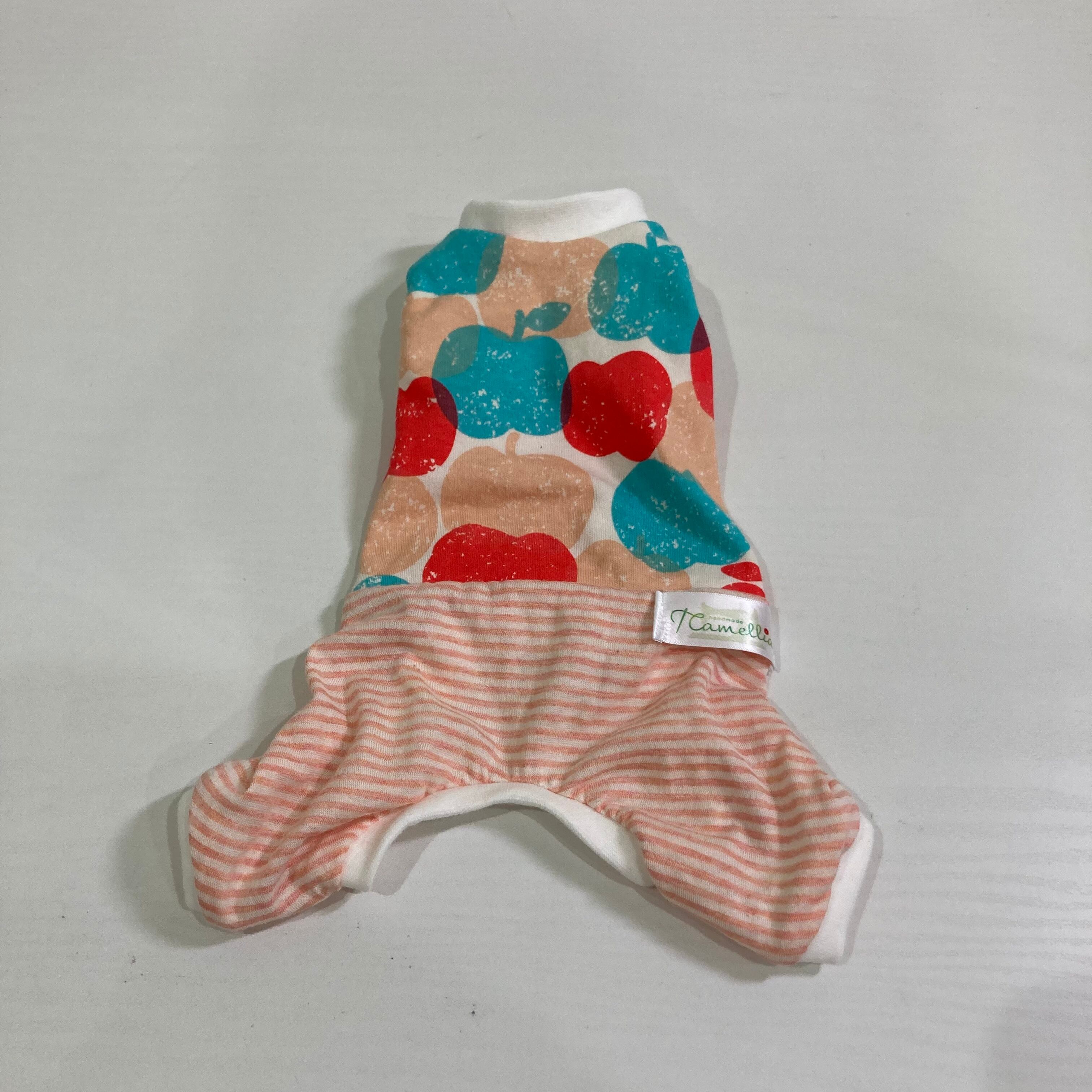 小型犬用XXSサイズ ロンパース りんご柄&ボーダー 白リブになります。