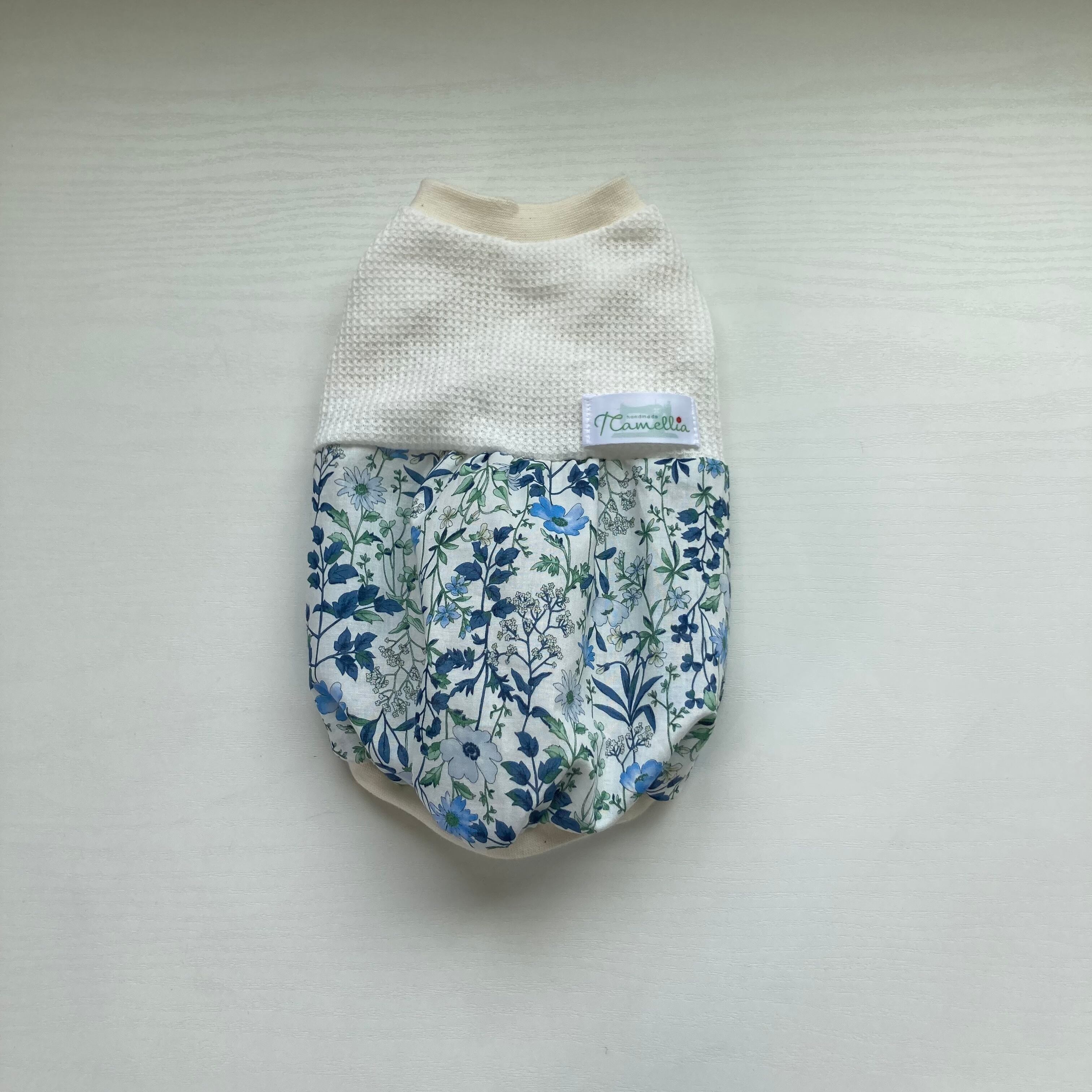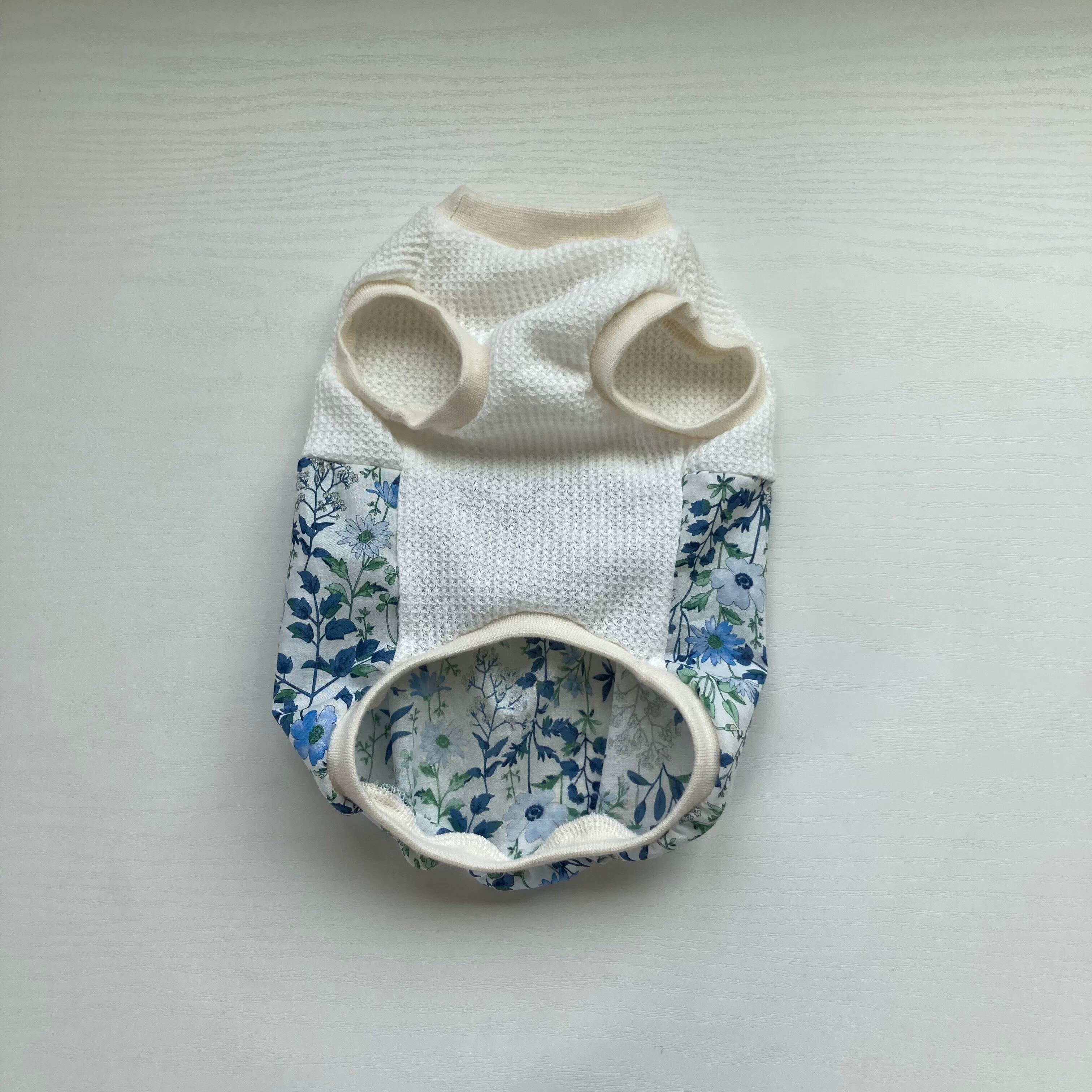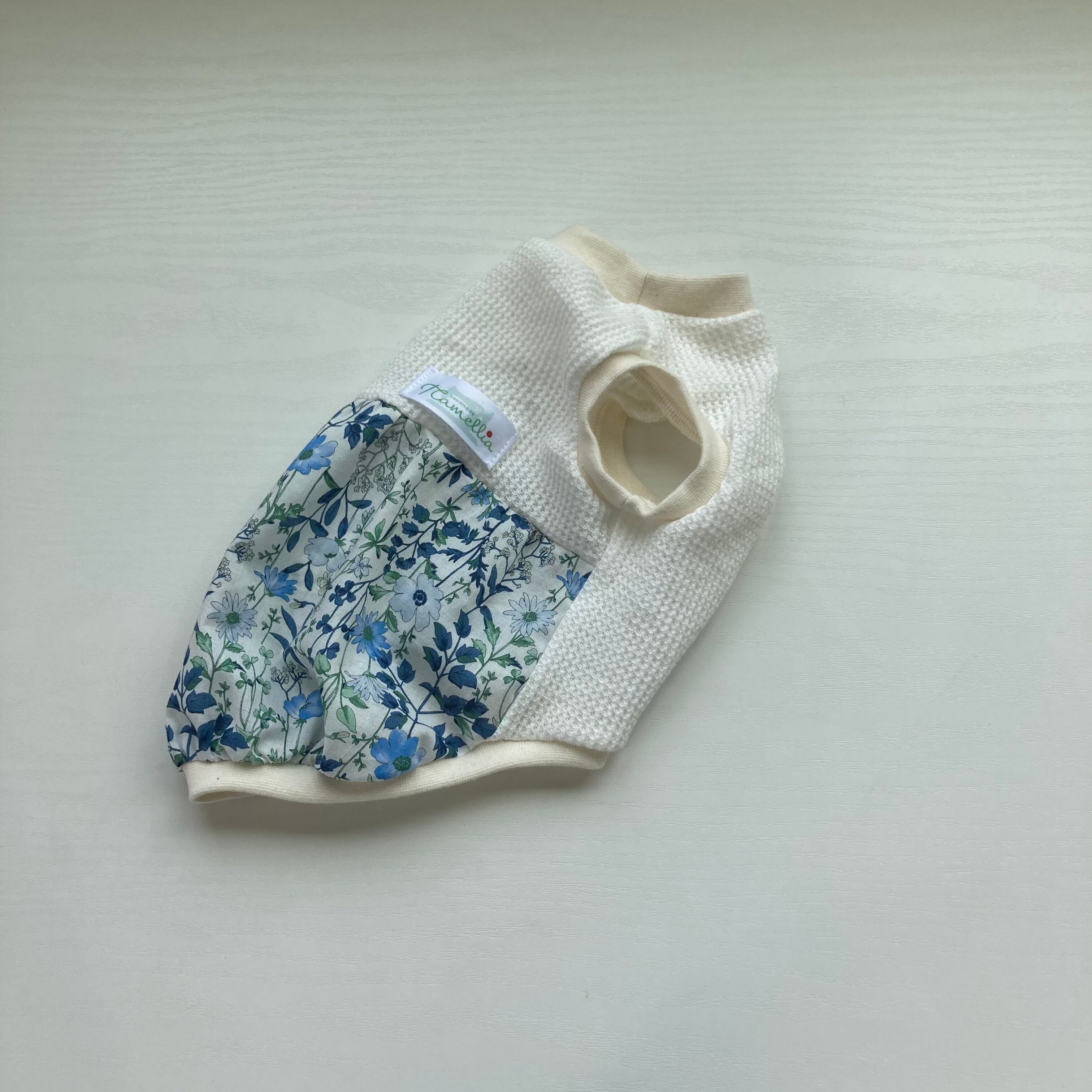犬服 ふんわりタンクトップ ワッフルニット(白)&ボタニカル(ブルー)生成リプ XXSサイズ ツートンタイプ 涼しいタンクトップ になります。