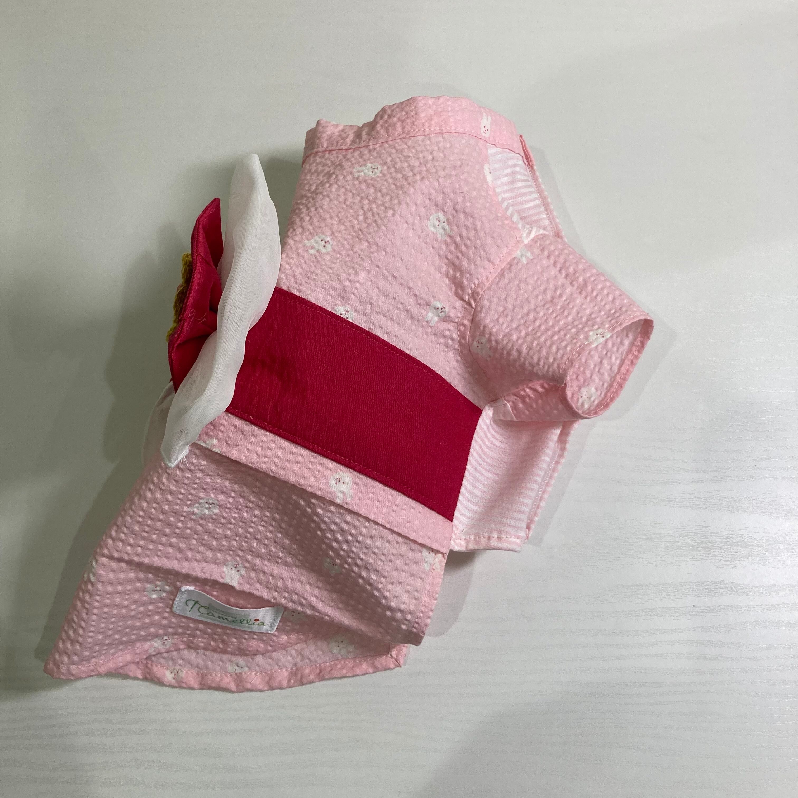☆小型犬 犬服 ゆかた うさぎ柄(ピンク)Sサイズ 胸開き