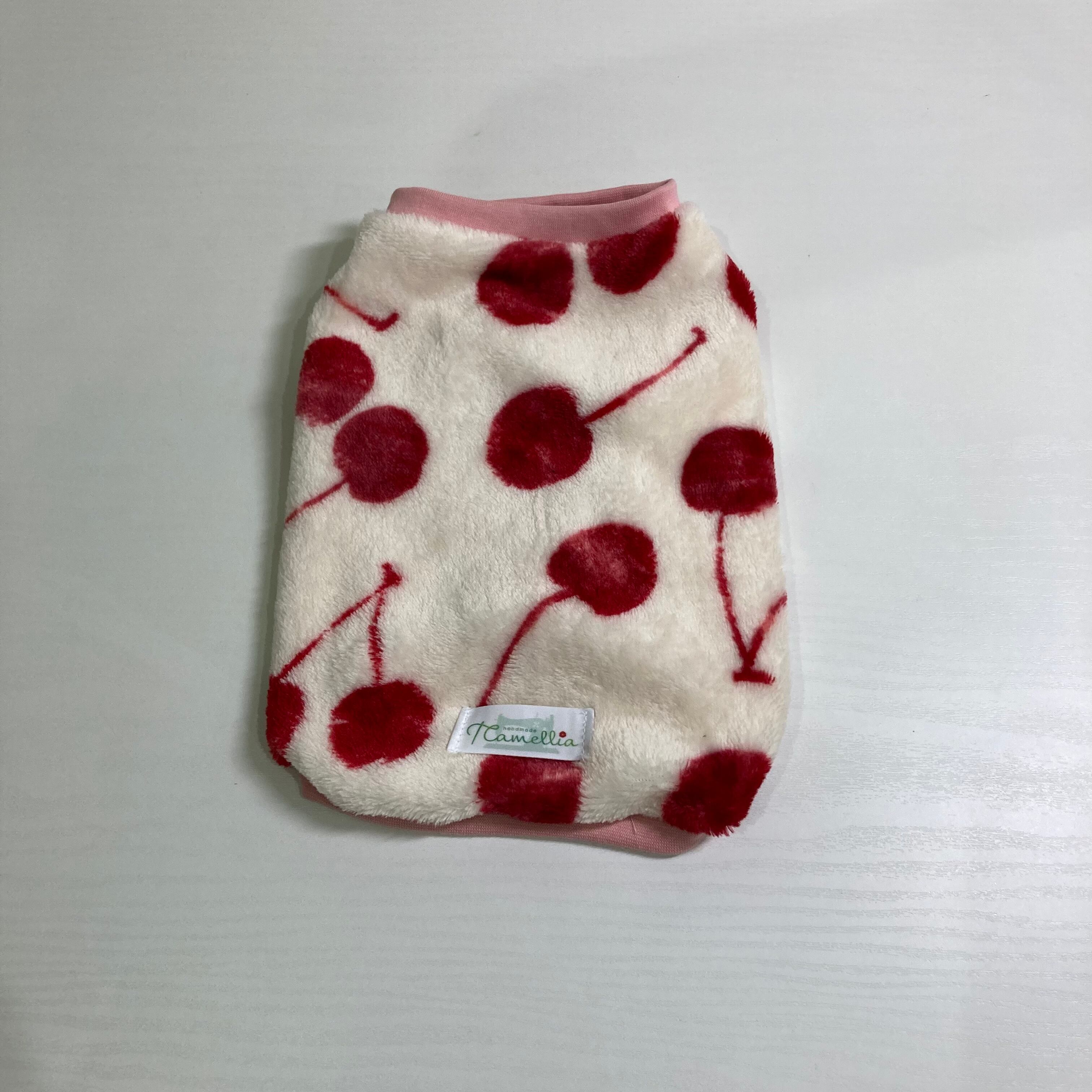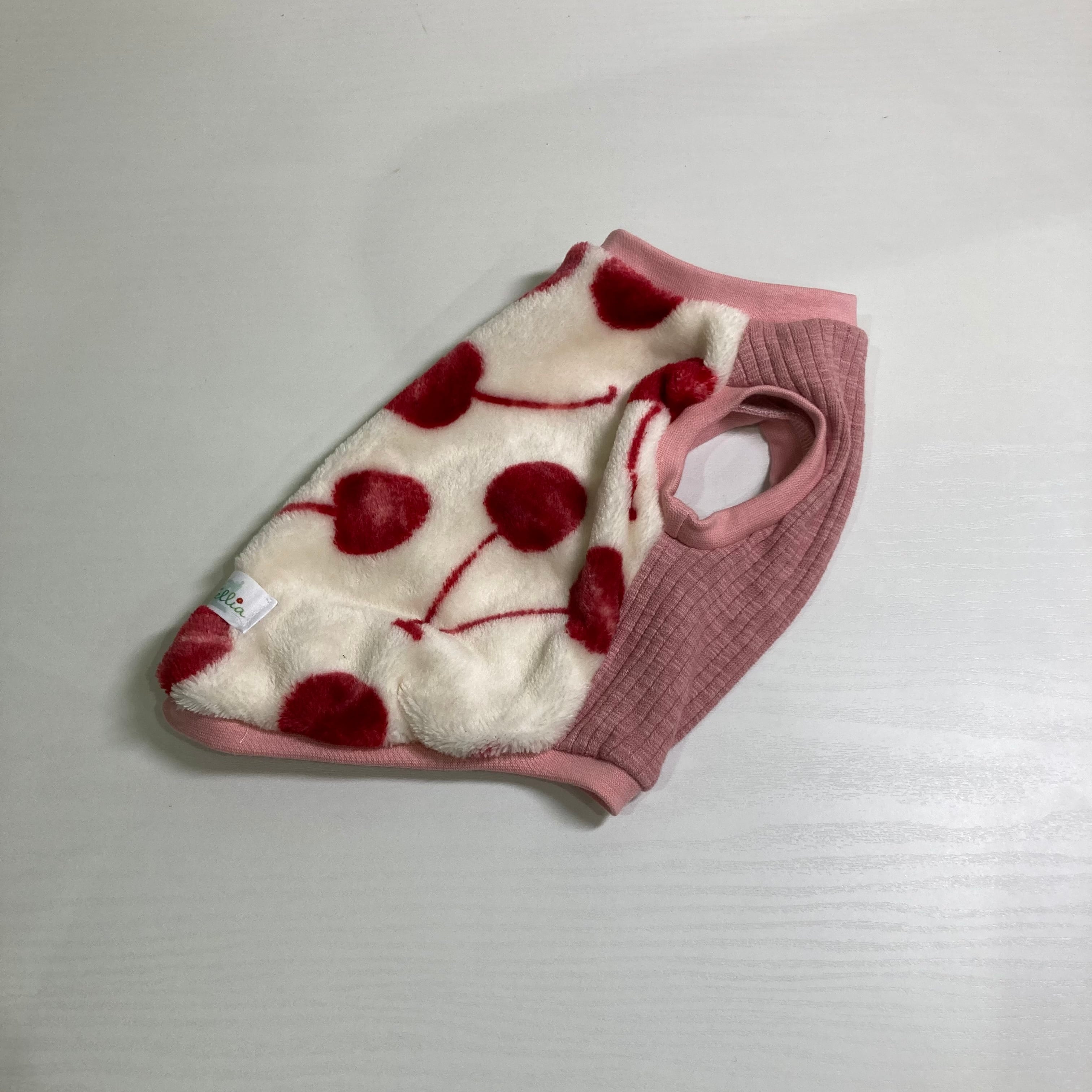 小型犬用XSサイズのフリースベスト チェリー柄になります。