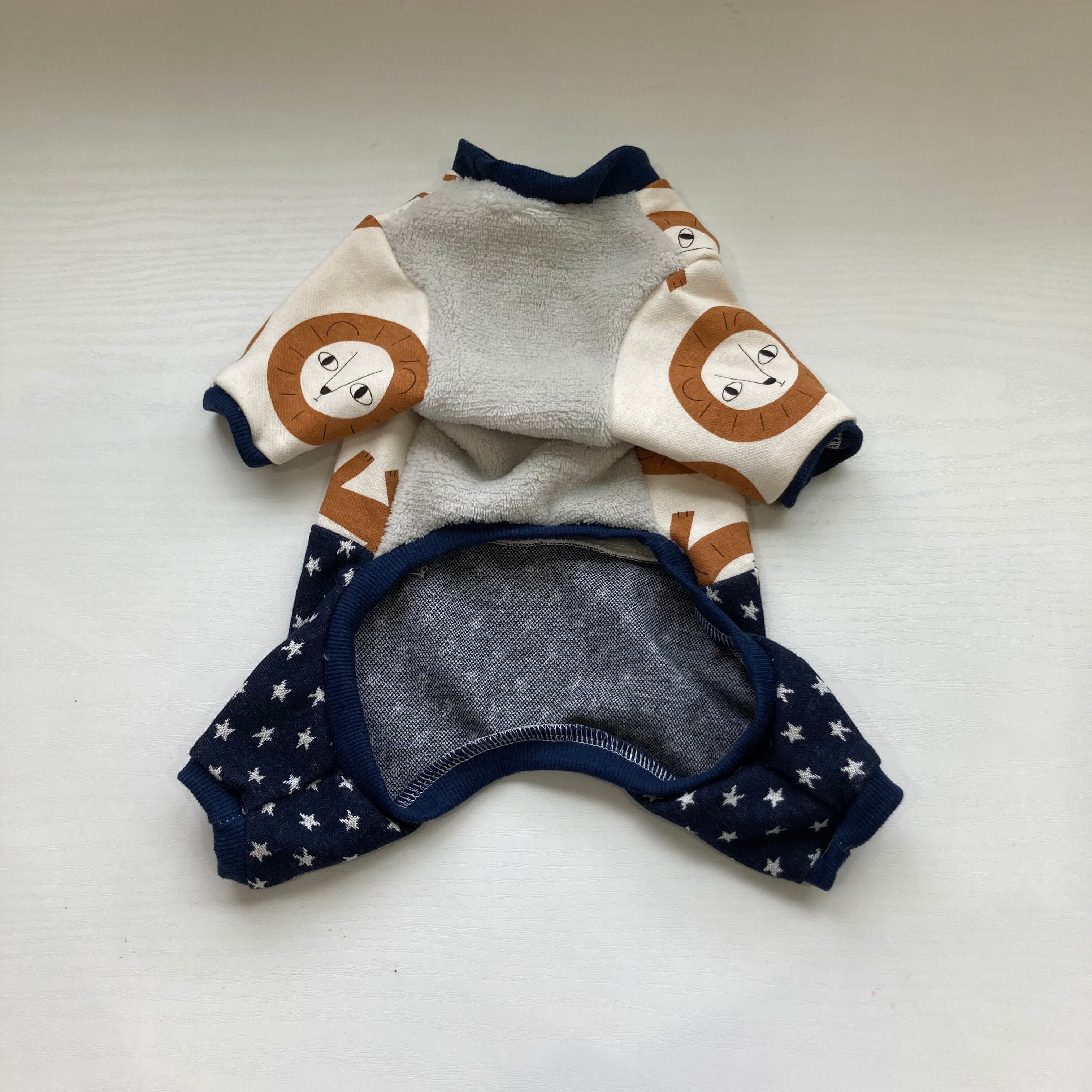 小型犬用XSサイズ 長袖ロンパース ツートンタイプ ライオン柄&星柄になります。