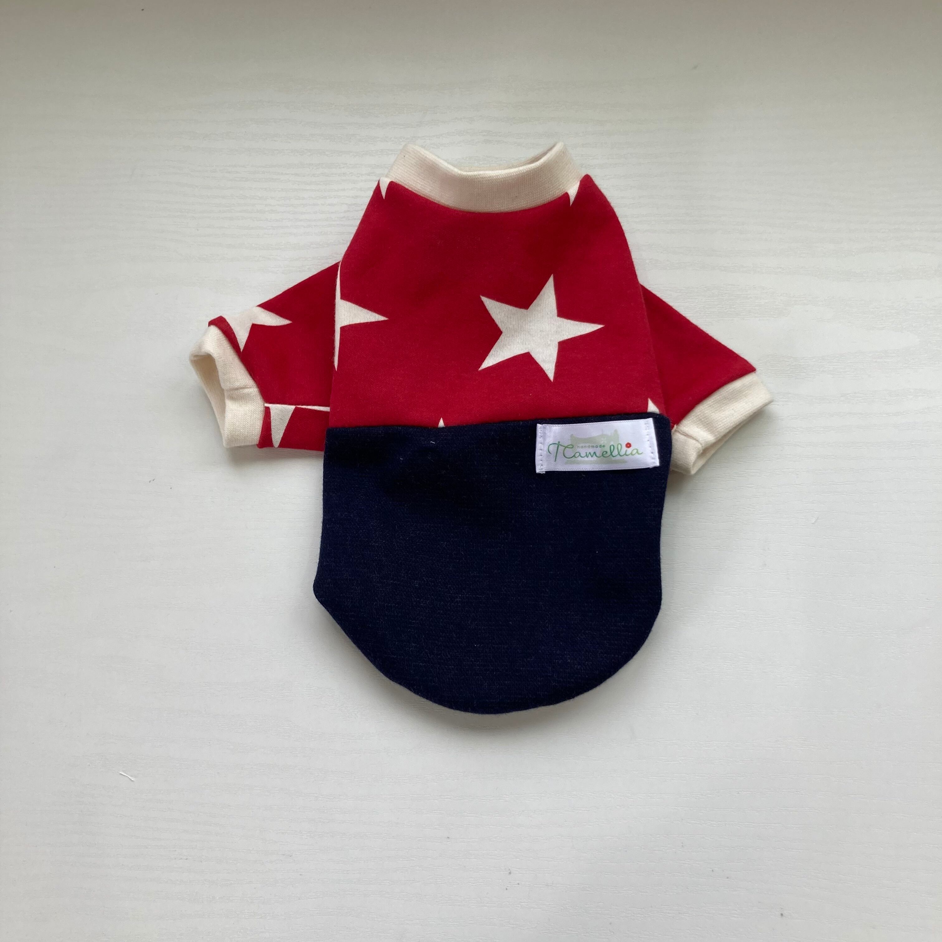 犬服 長袖カットソー 星柄(赤) &デニム風ニットXXSサイズ になります。