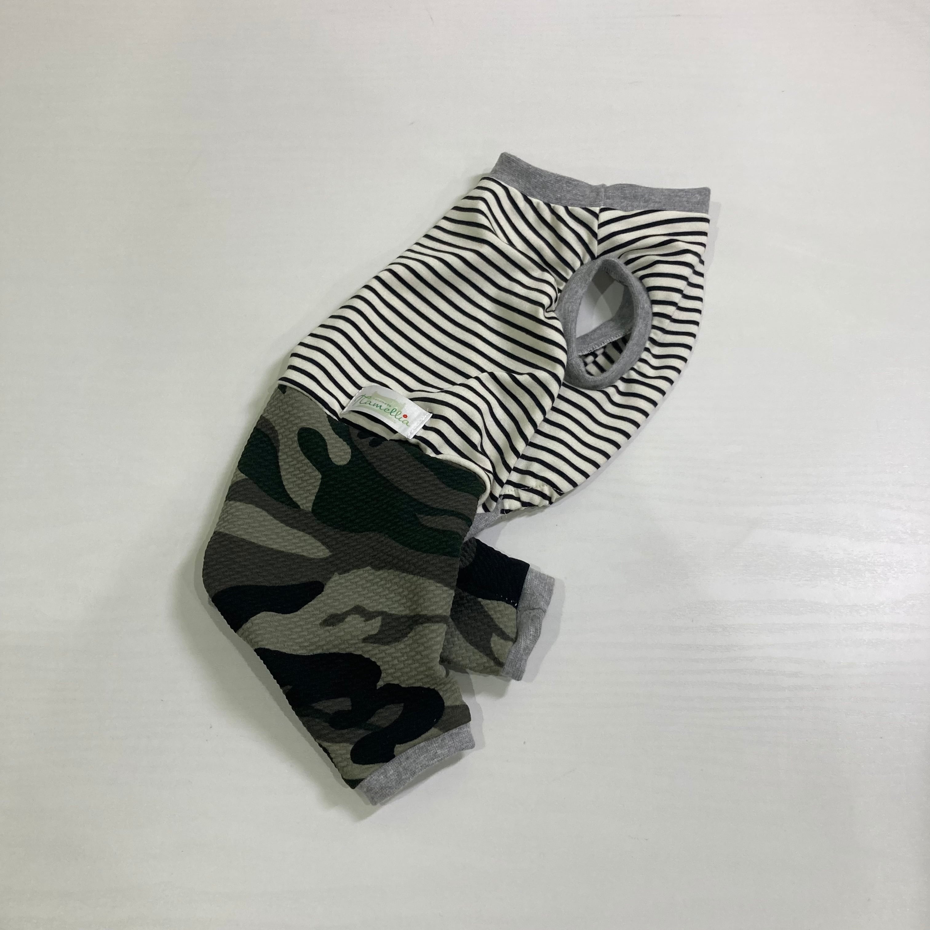 ☆犬服 ツートンロンパース ボーダー柄&迷彩柄(グレーリブ)Sサイズ