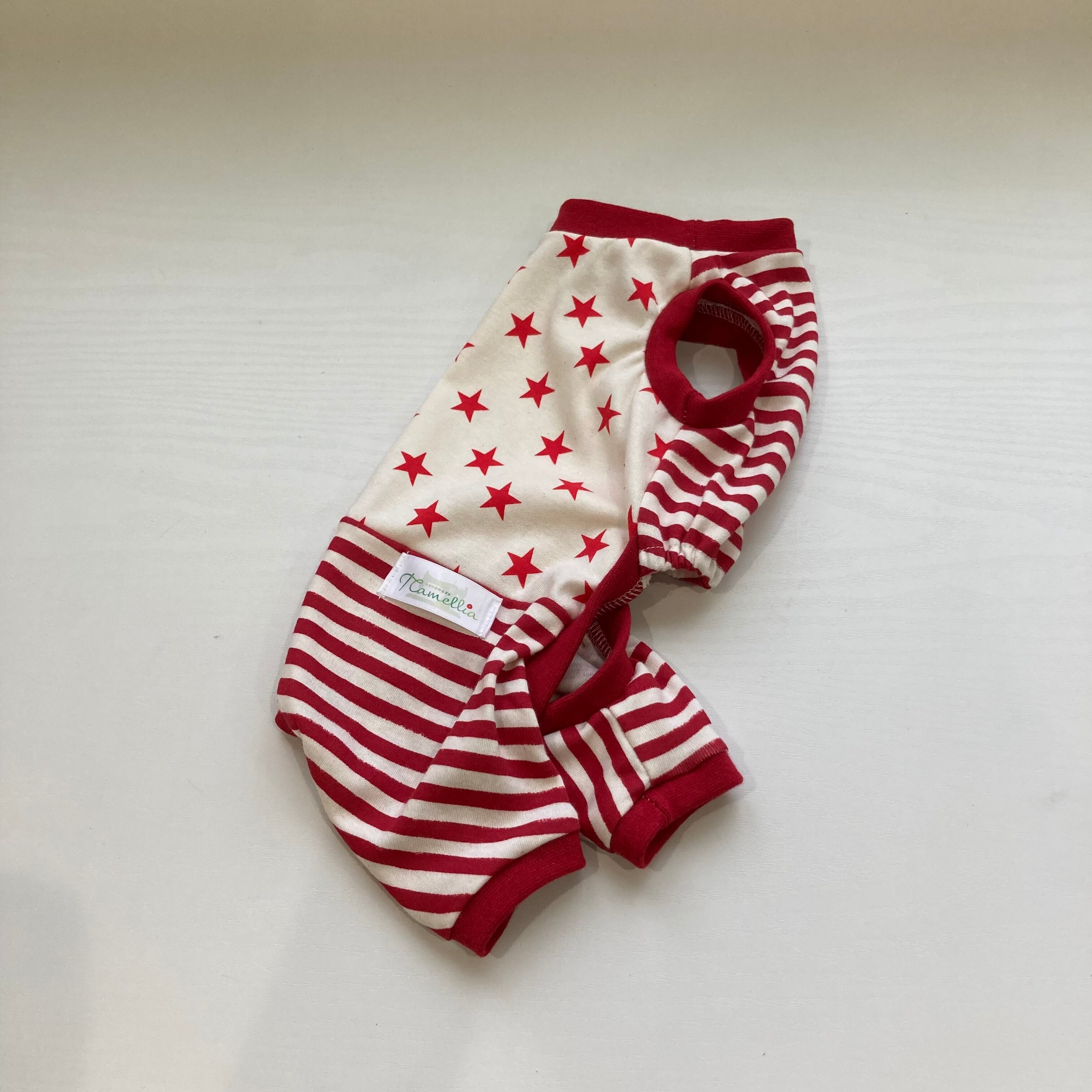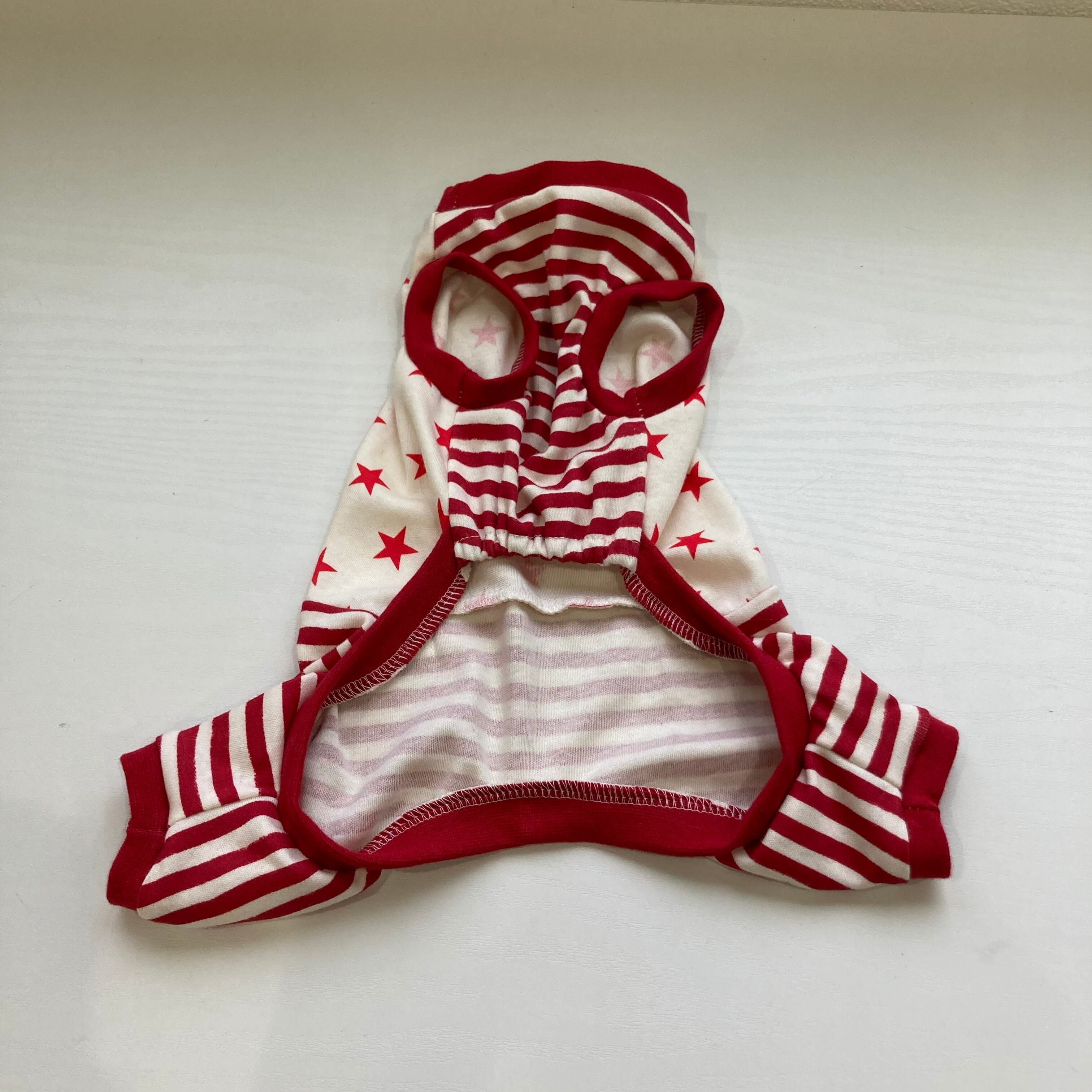 犬服 ツートンロンパース 星柄(赤)&ボーダー赤(赤リブ)Sサイズ