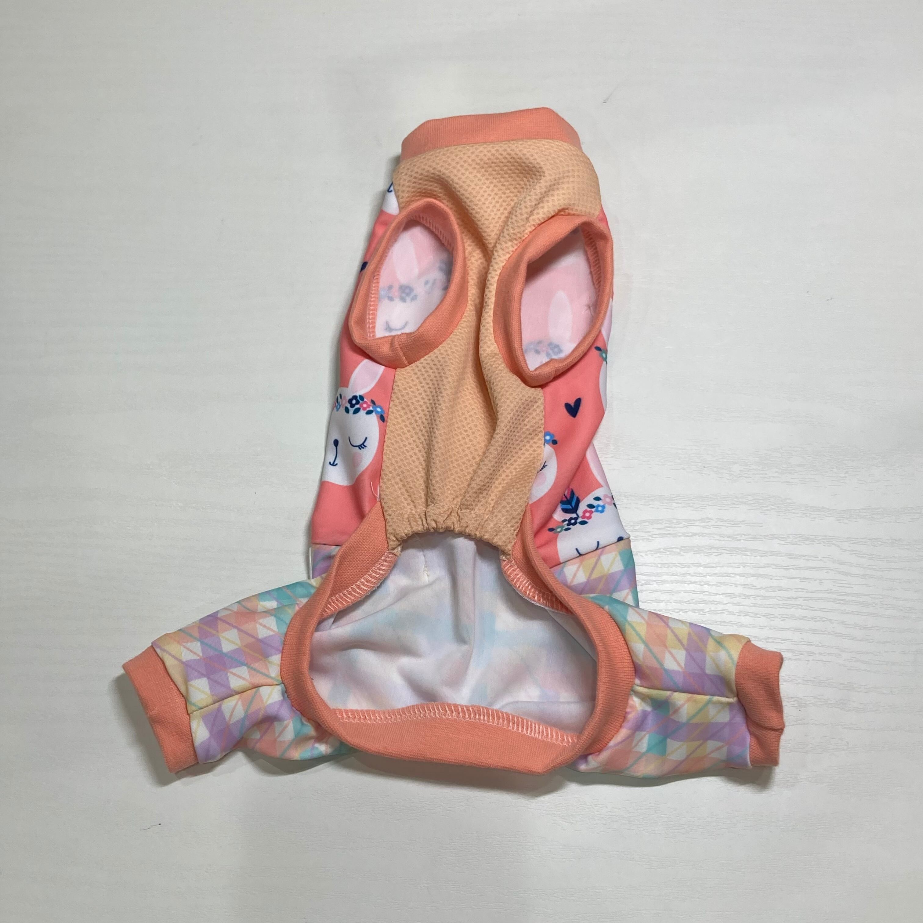 小型犬 犬服 接触冷感 ロンパース ツートンタイプ うさぎ柄&チェック(ピンク)ピーチリブ XXSサイズになります。