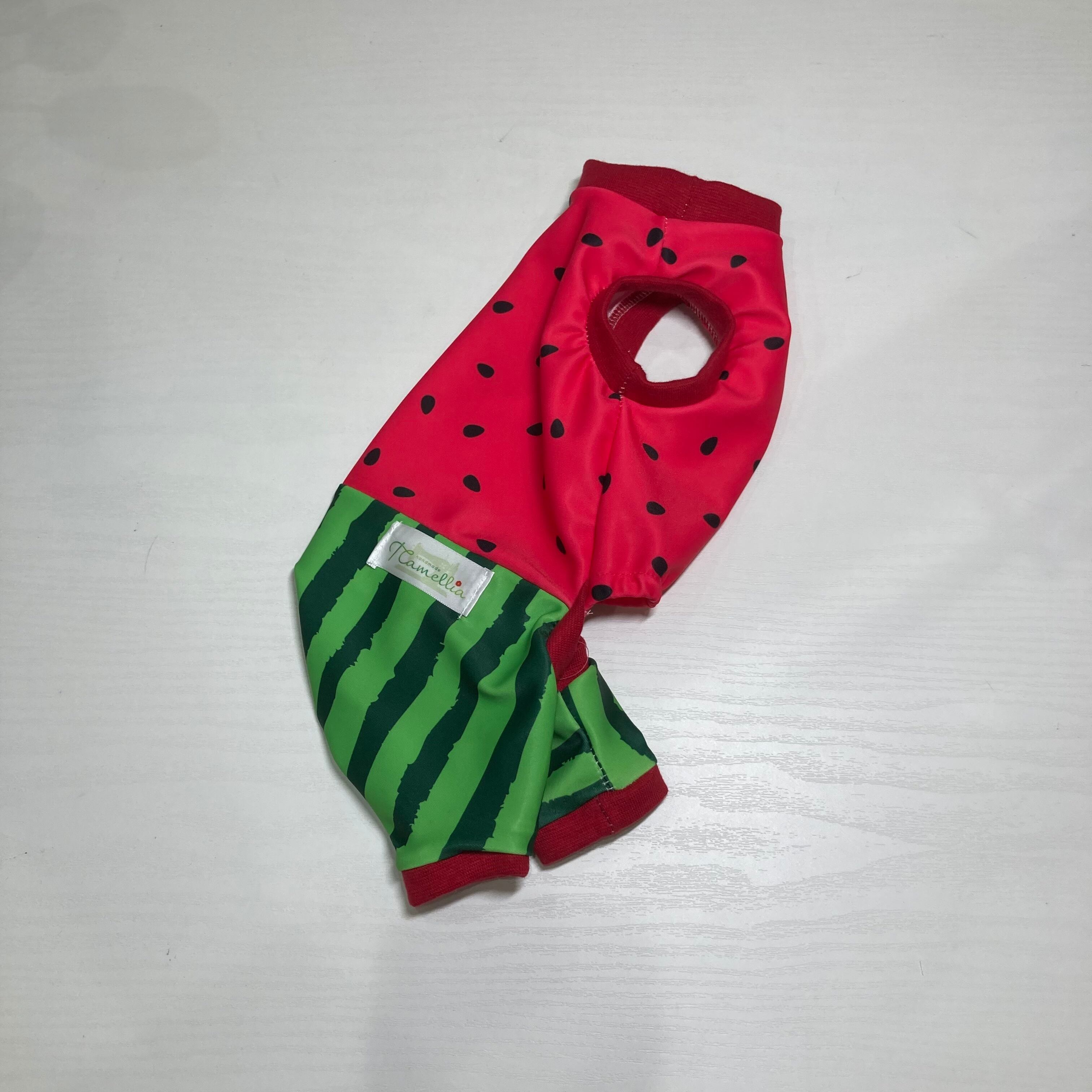 犬服 接触冷感 ロンパース スイカ柄(赤にリプ)XXSサイズ になります。
