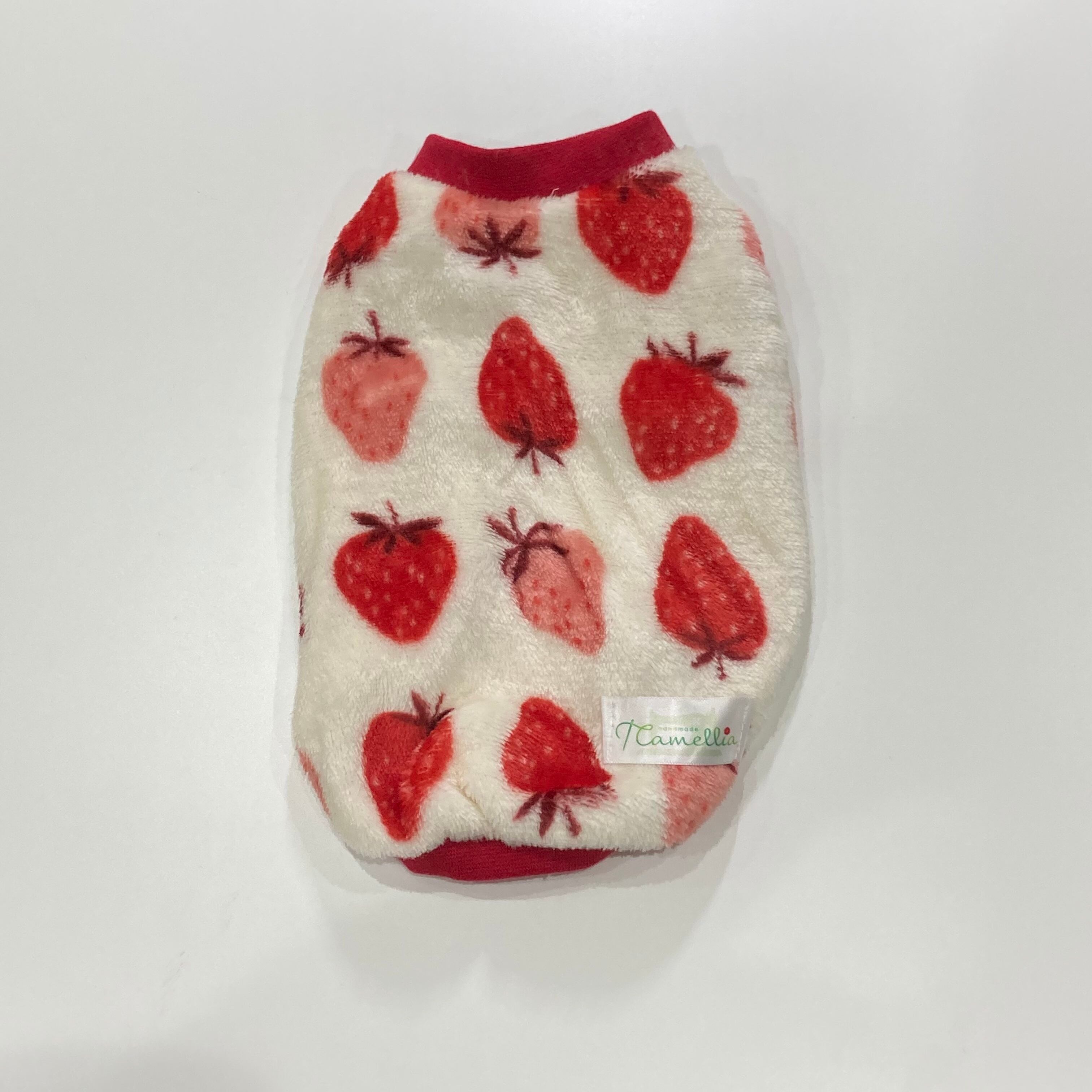 犬服 フリースベスト いちご柄(赤リブ)XXSサイズ 女の子 男の子になります。