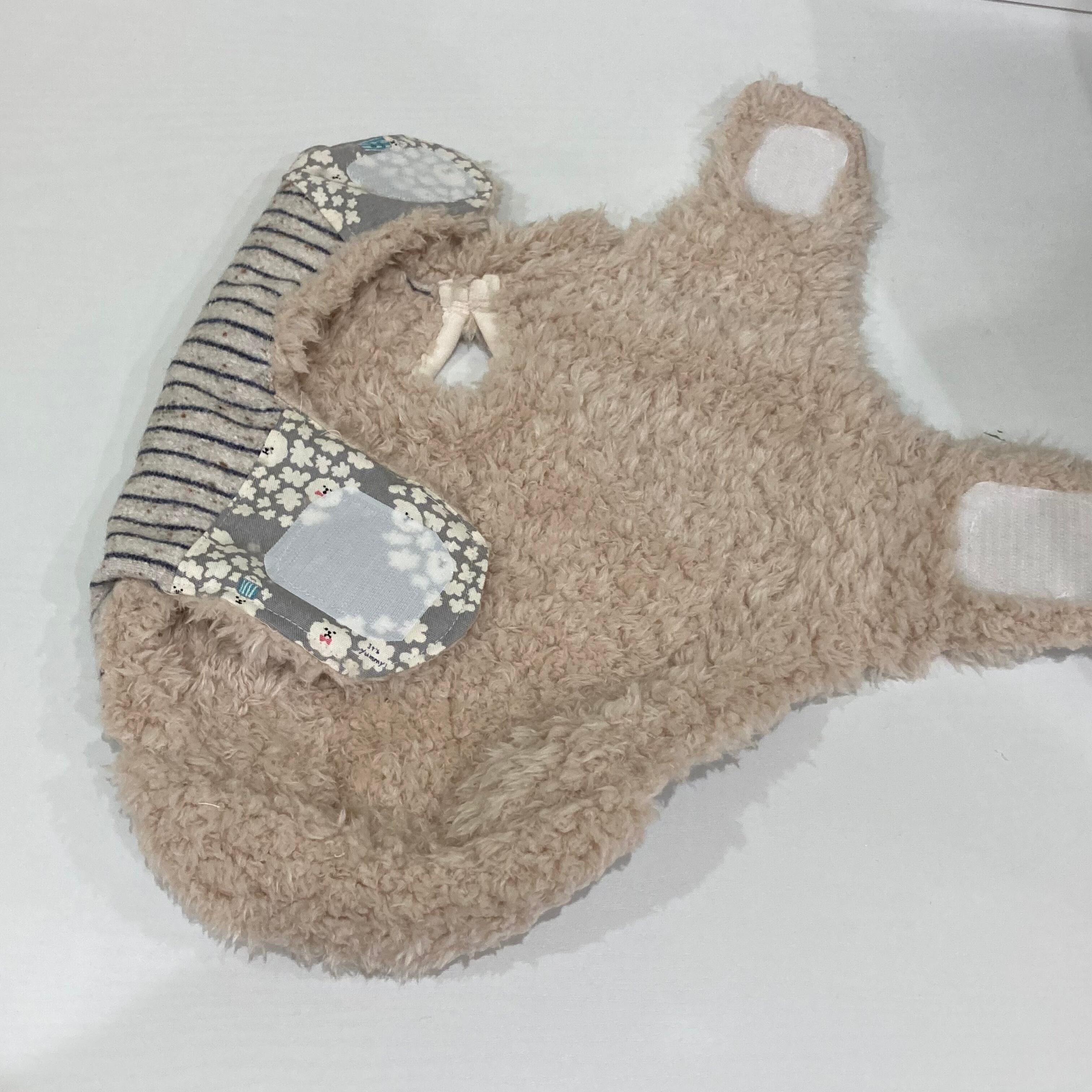 犬服 ポンチョ ボーダー柄&プードルファー Sサイズ リード穴あり
