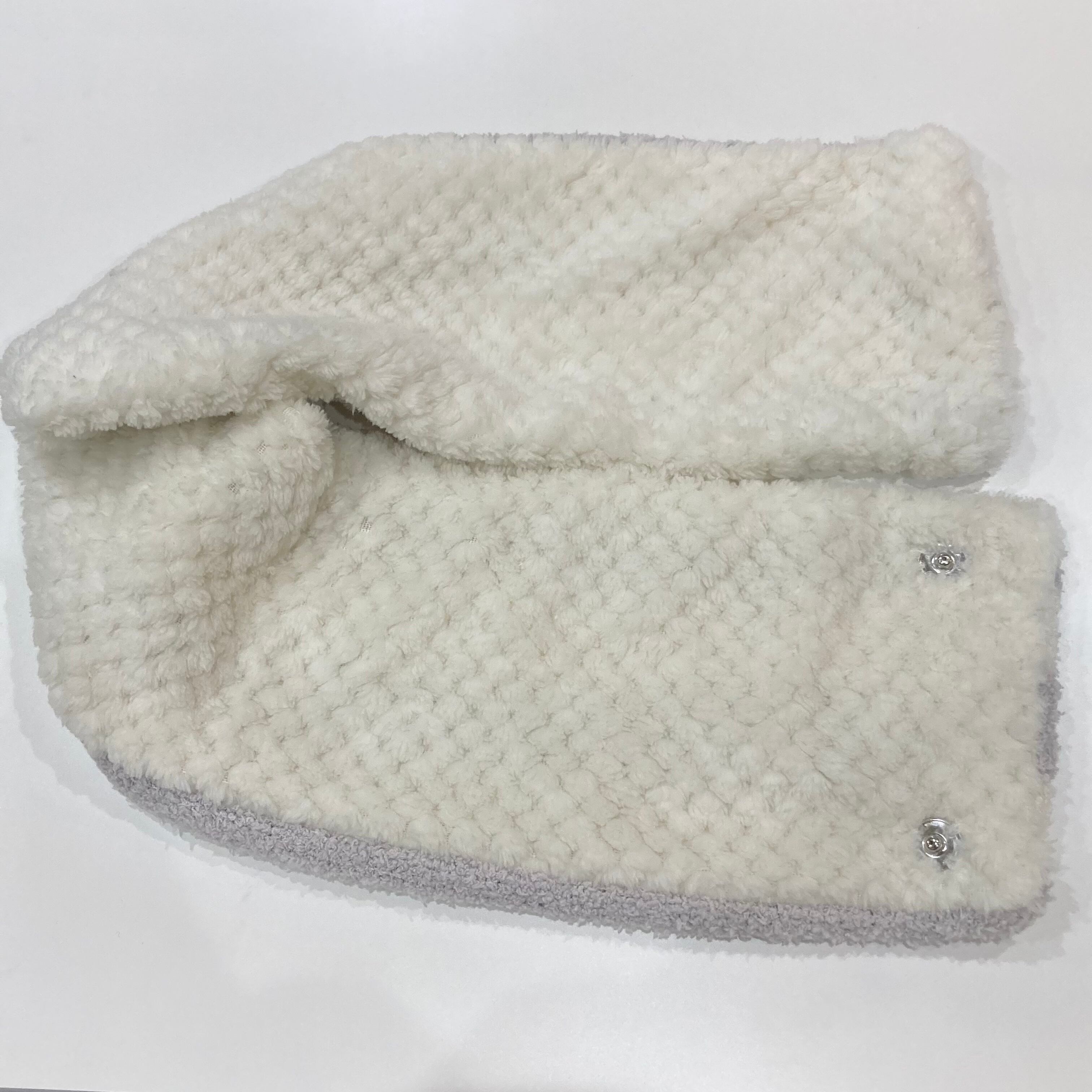 #ネックウォーマー #リバーシブルネックウォーマー #ハンドメイドネックウォーマー #お散歩用マフラー #ネックウォーマースナップボタン止め #ハンドメイド #ネックウォーマーリバーシブル #ハンドメイドcamellia #スヌード白 #ハンドメイドボアスヌード
