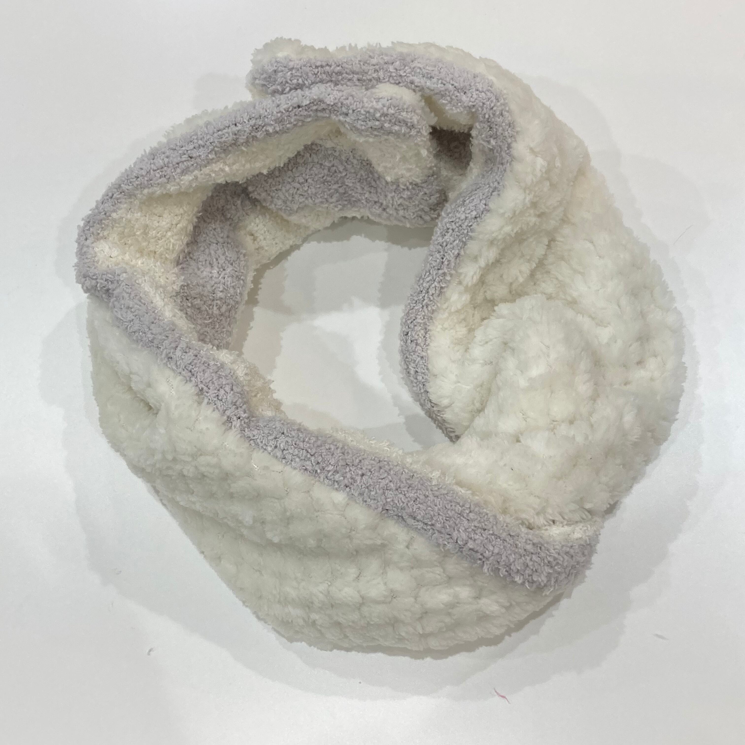 モコモコスヌード リバーシブルタイプ パイナップルボア(ミルク)&モールニット(ラベンダーグレー) スナップボタン開閉タイプになります!