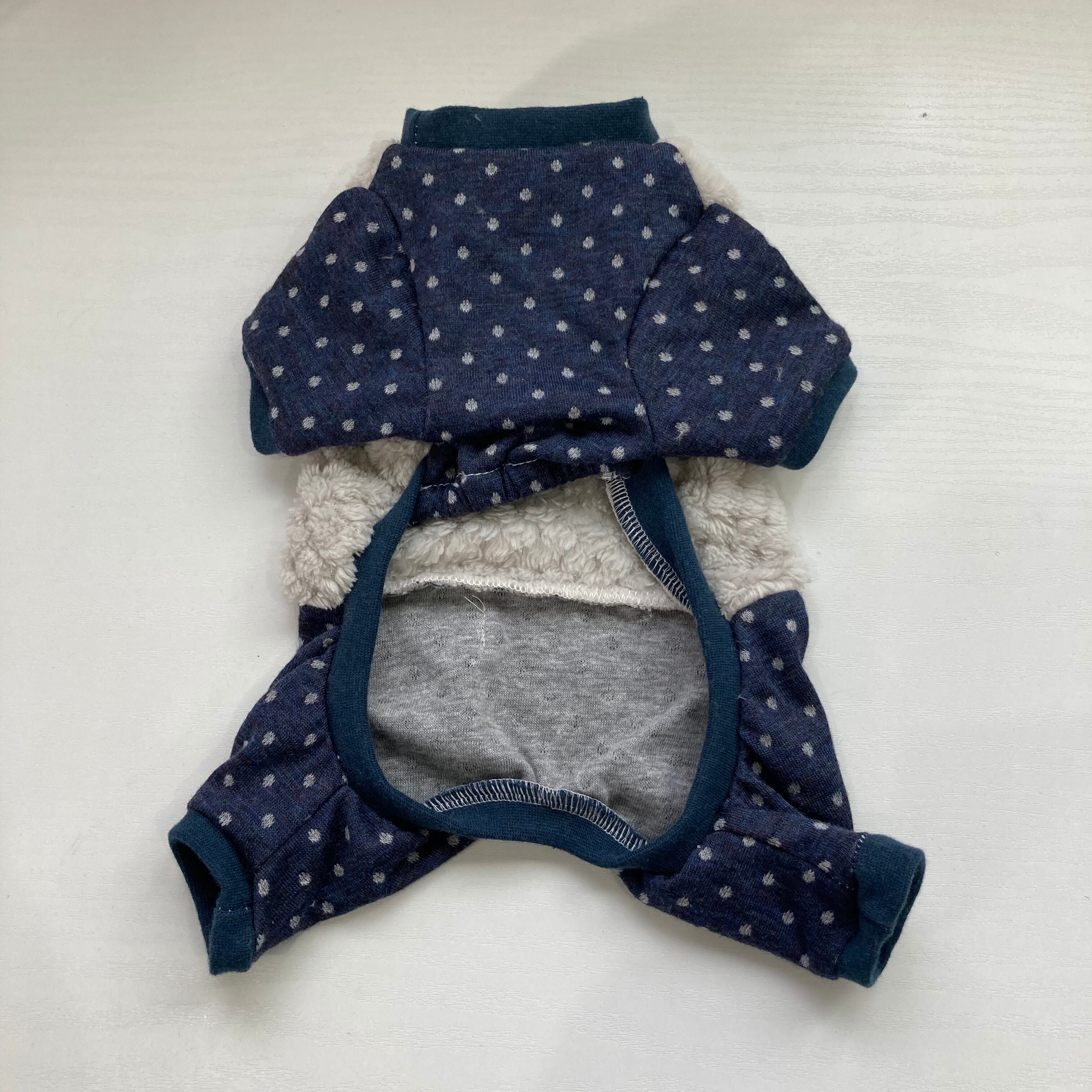 犬服 ふんわりパイナップルボア 長袖ロンパース パイナップルグレー&ドット紺(紺リブ) XXSサイズ