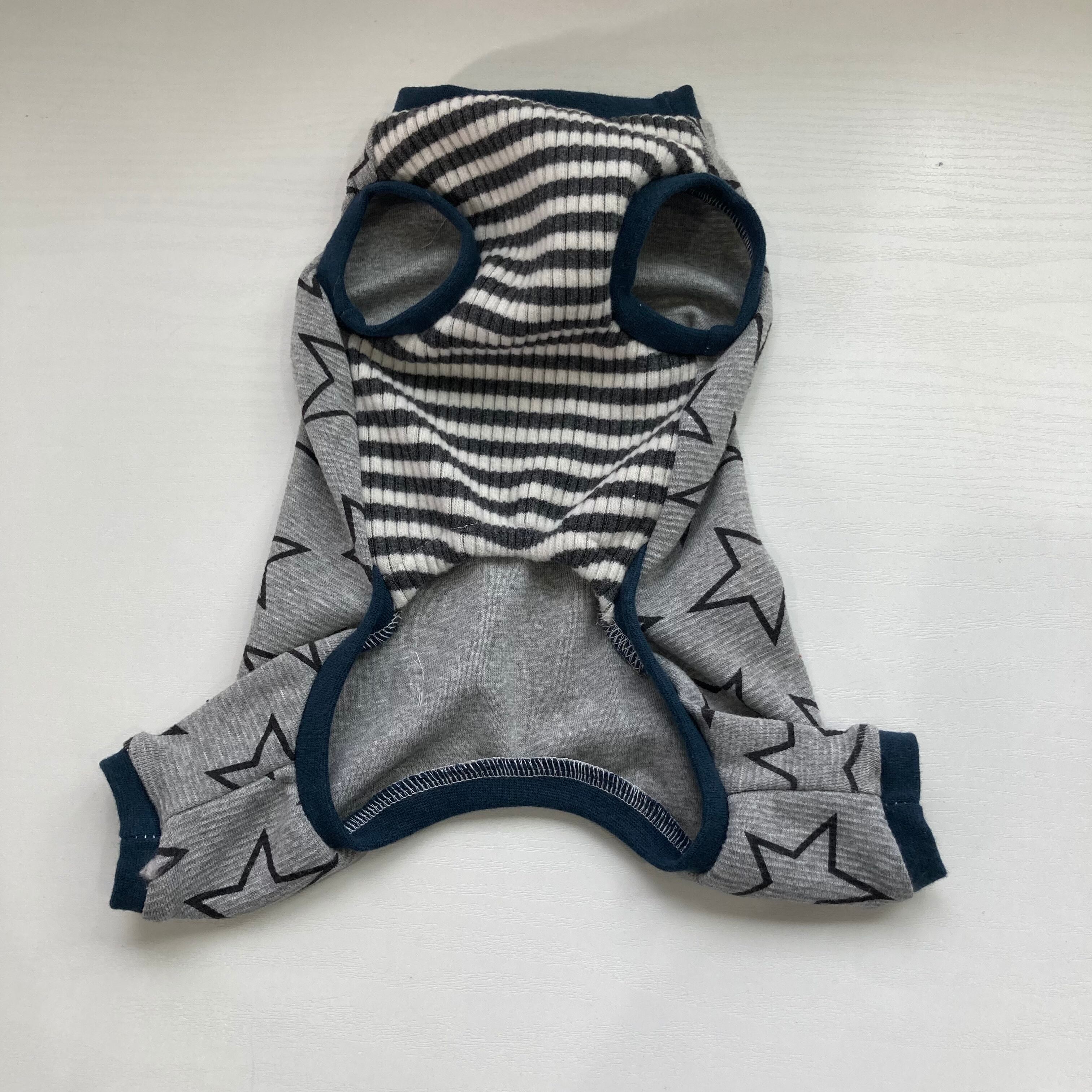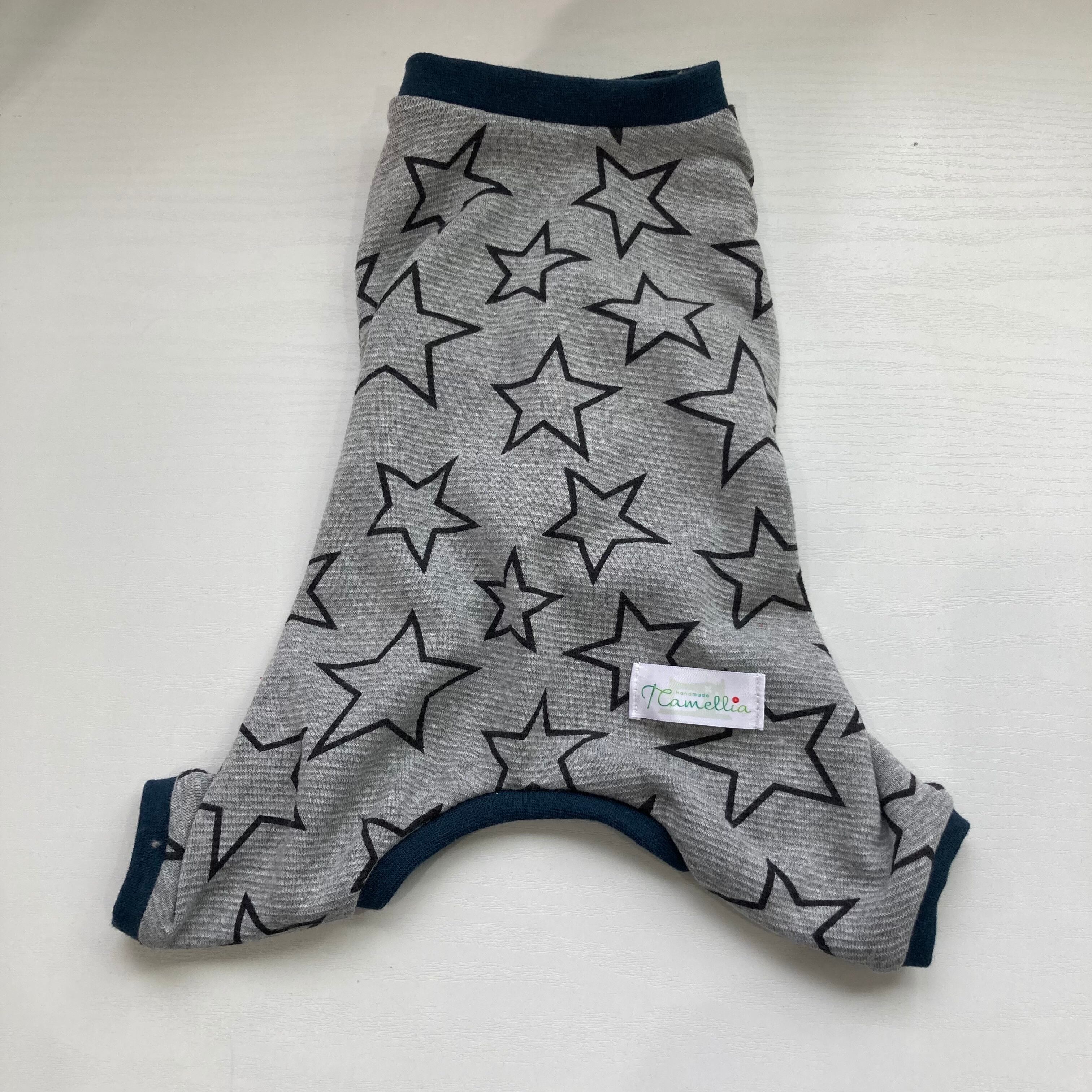 小型犬 犬服のびのびロンパース 星柄グレー Sサイズ