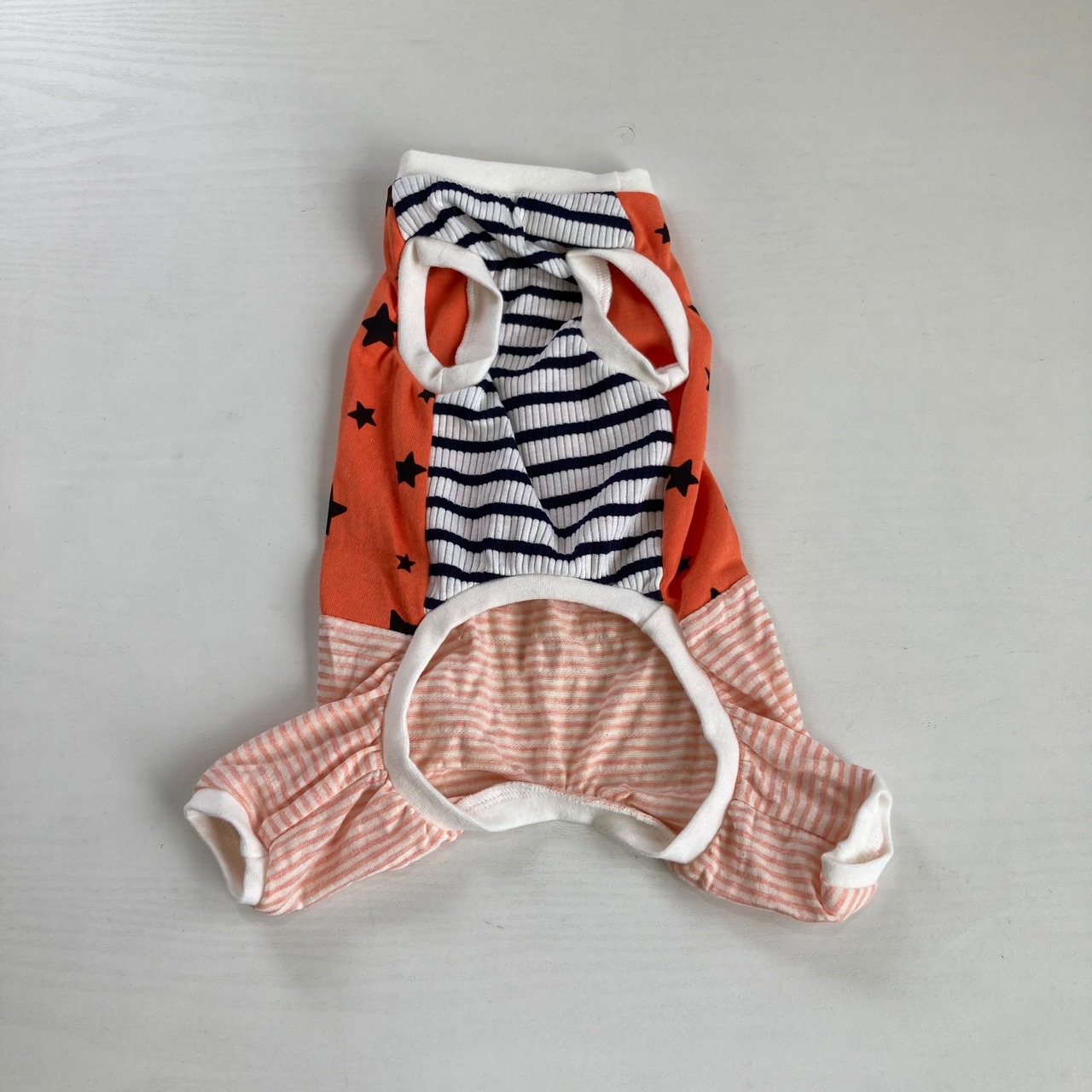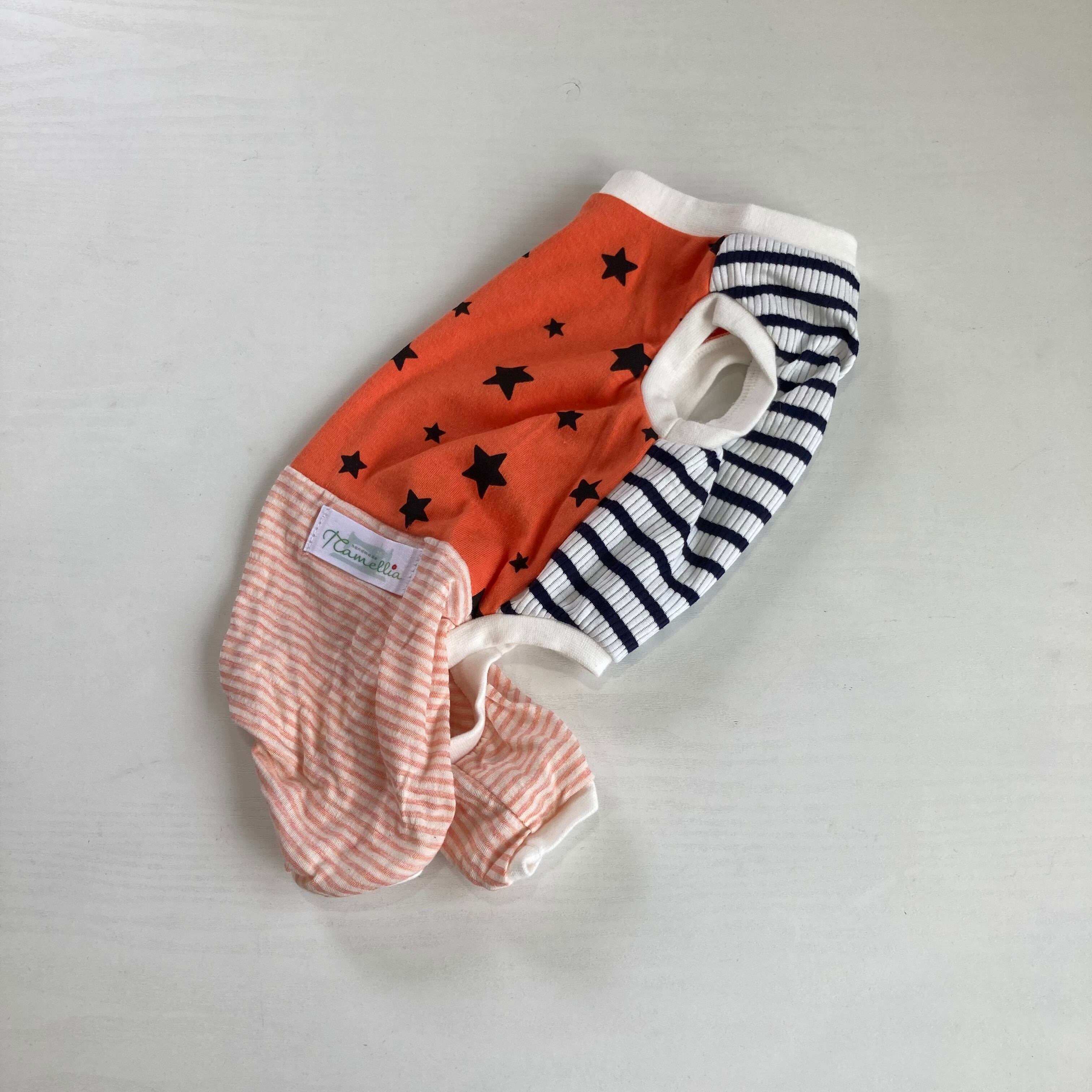ハロウィン✨ 犬服 ロンパース ツートンタイプ 星柄(オレンジ)&ボーダー(白リブ)Sサイズ