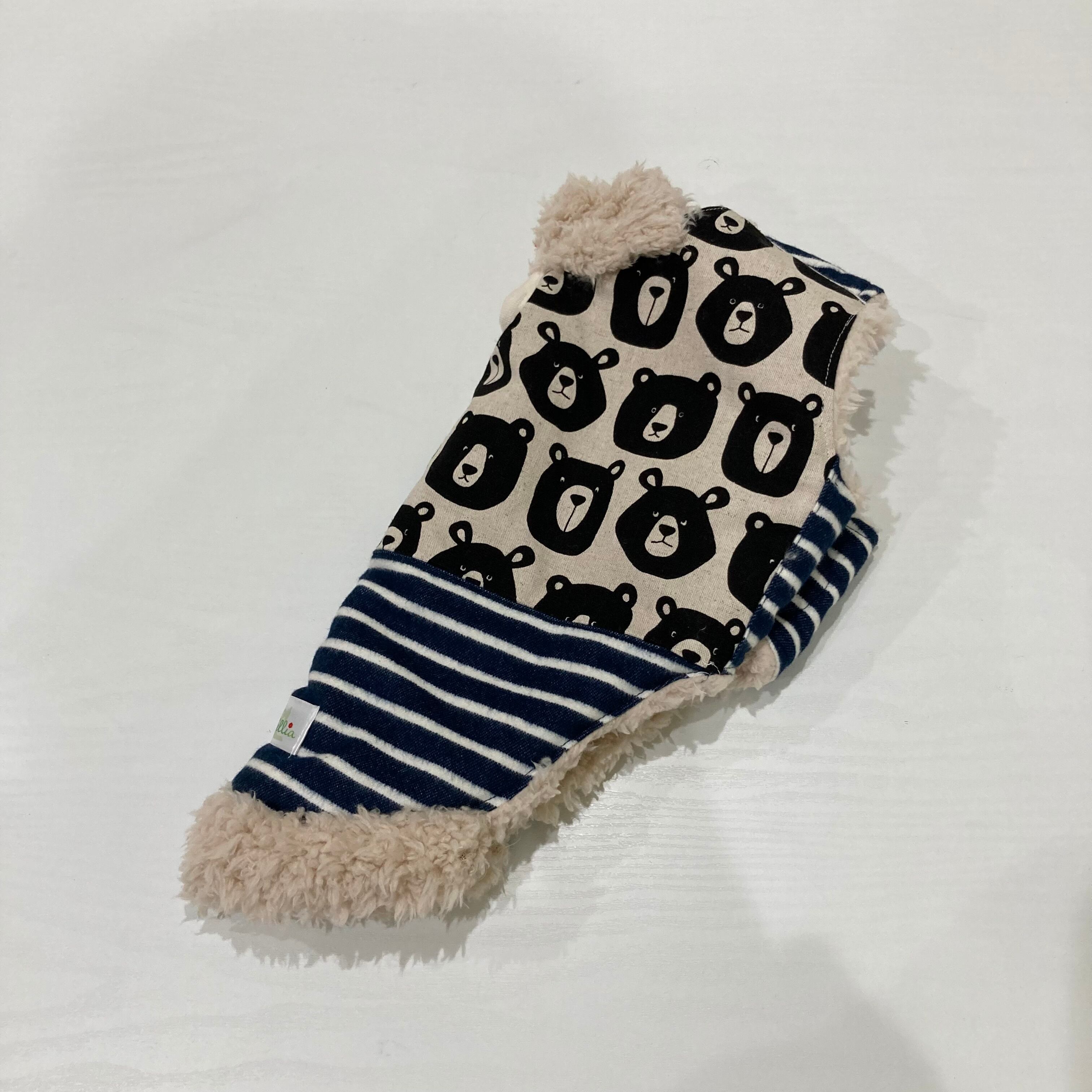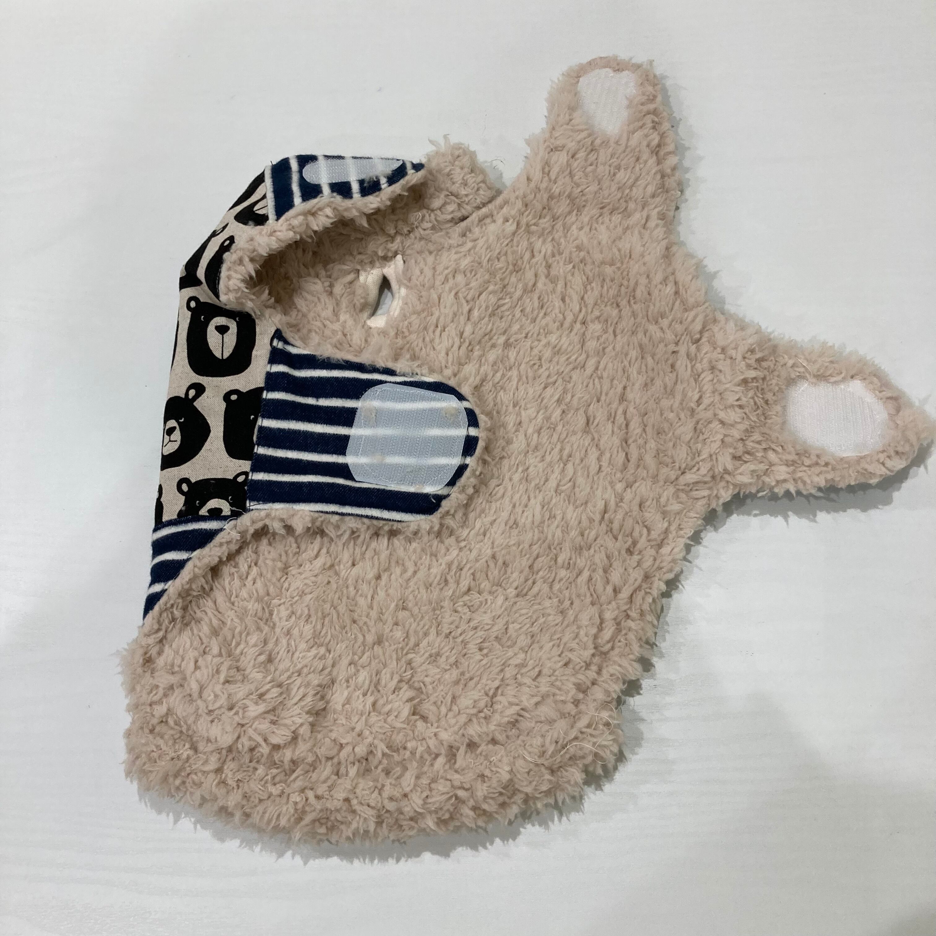 犬服 ポンチョ クマ柄(ベージュ)&ボーダー(紺)プードルファー Sサイズ リード穴あり