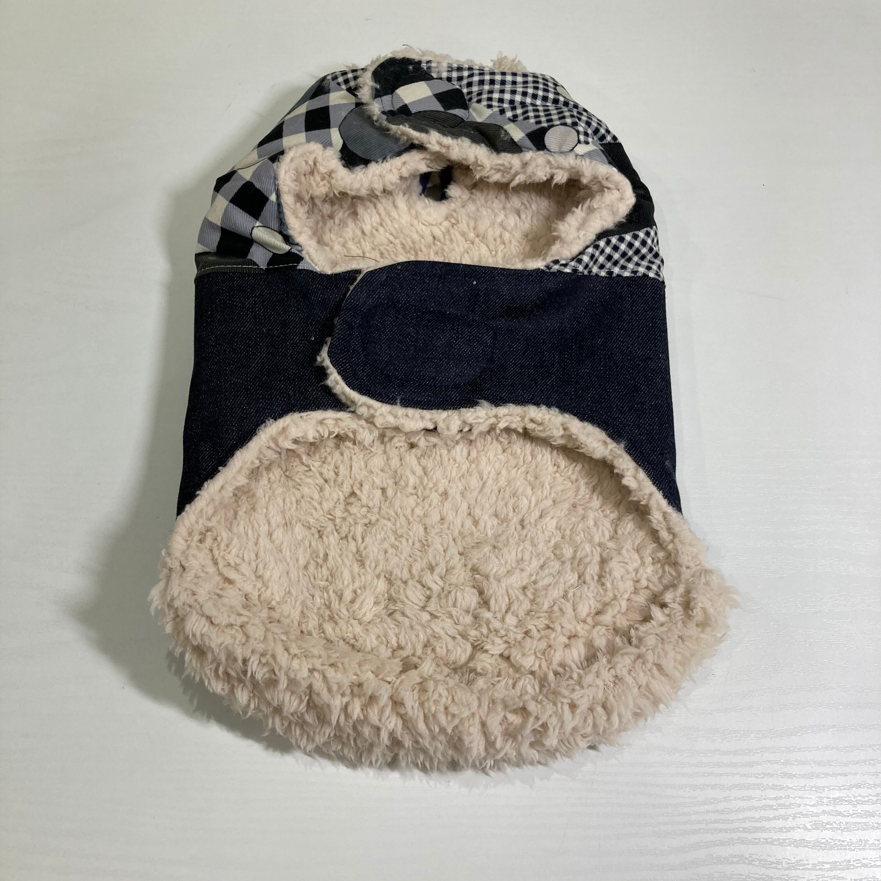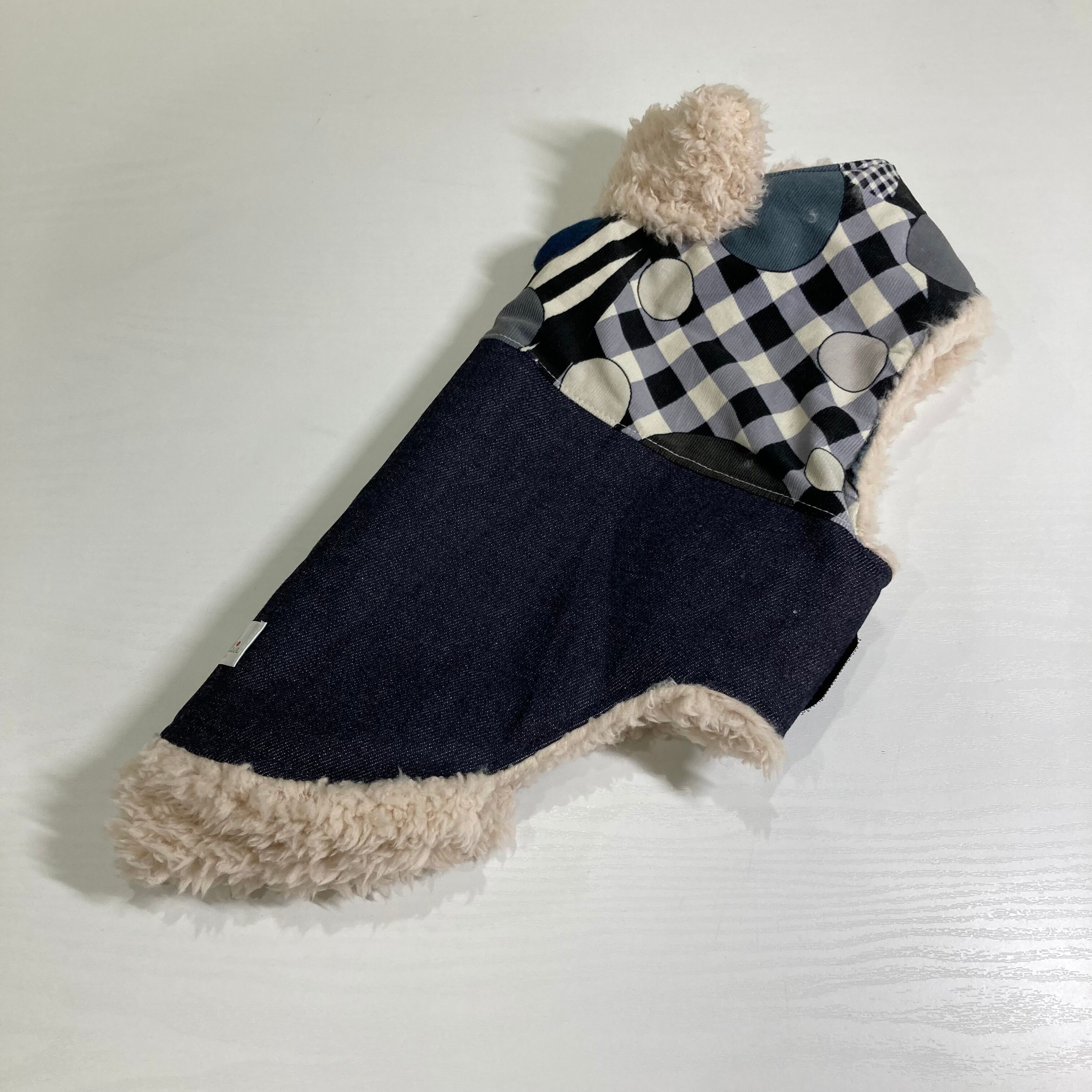 犬服 ポンチョ 幾何学柄&デニム Mサイズ リード穴あり